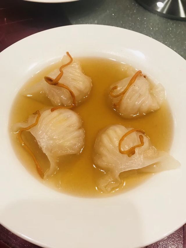 The Four Seasons (China Hotel)中酒四季厅,老式茶楼,有很多怀旧点心,怀旧鸡包仔、蜂巢芋角;虫草花鸡汤虾饺、桃胶双皮奶、叉烧酥、春卷好吃;柴鱼花生粥惊艳,花生和柴鱼融入粥里,粥很绵,早上喝一碗粥整个人都感觉好舒服。