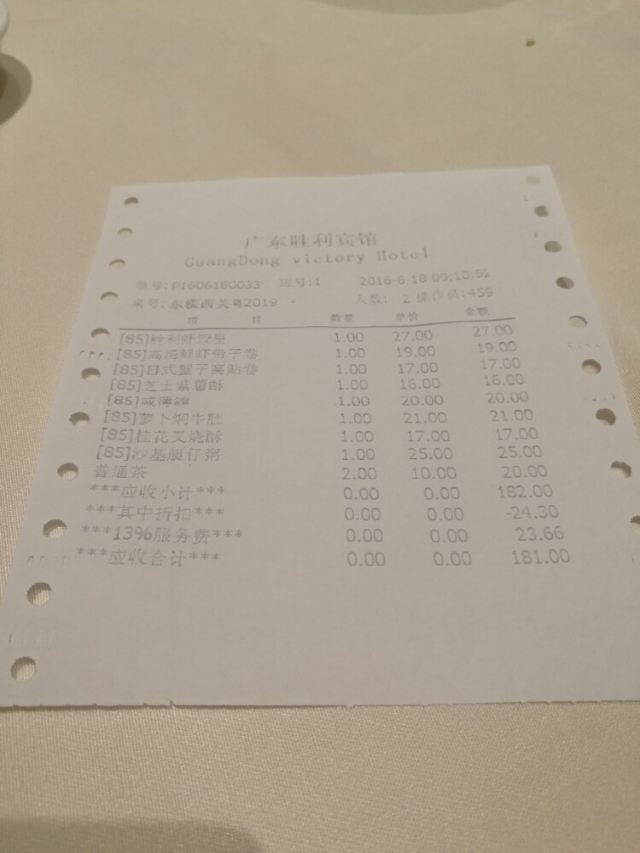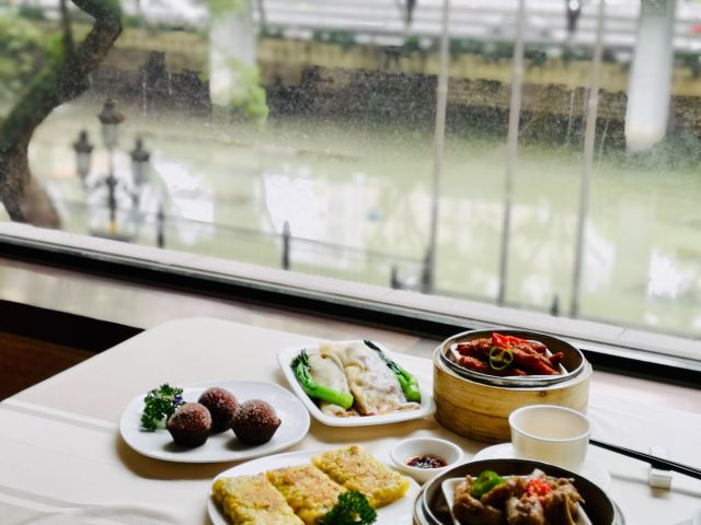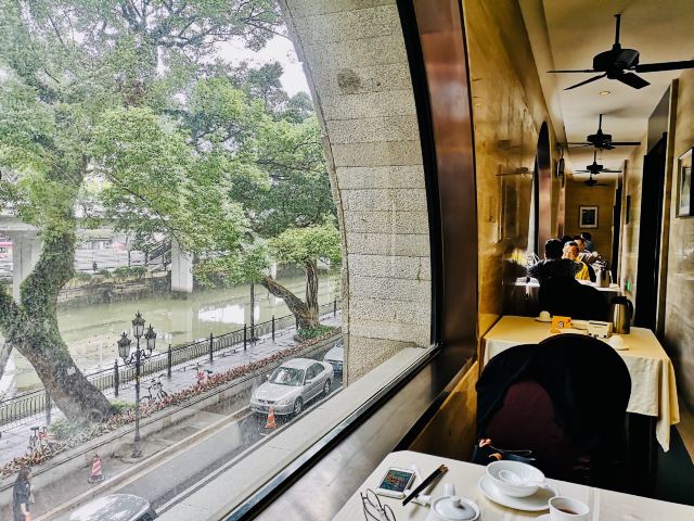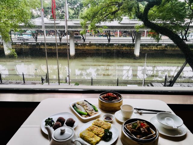 位于胜利宾馆的2楼,广州沙面环境优雅恬静,古色古香,西关粤深处古树古建筑环境中,更显得其古朴典雅。其餐饮点心口味地道,清淡精致,点餐随意,不过茶水费挺贵的。