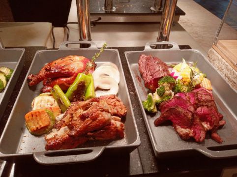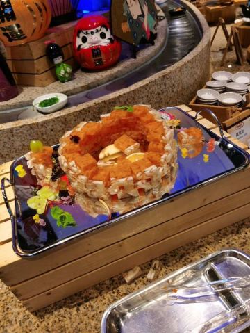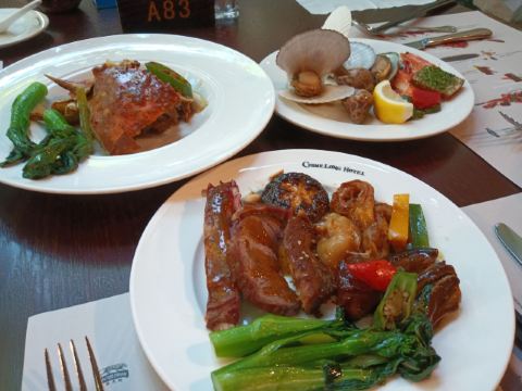 长脚蟹,三文鱼,芝士焗生蚝,牛排,香煎鹅肝,红虾刺身,与白虎共餐,自助餐,火烈鸟,海鲜,芝士蛋糕,甜筒雪糕,甜点,炖汤,波士顿龙虾汤,鲍汁汤,鹅肝双重奏,面包布丁,蛋挞,刺身,烧烤,火爆辣鸡香蒜披萨,鸡软骨,冻虾,雪糕,牛扒,濑尿虾,冻蟹,元贝,蛋糕,三文鱼刺身