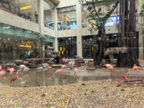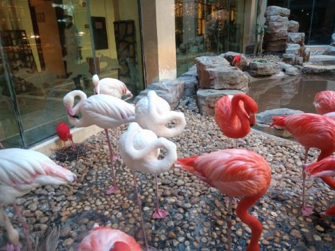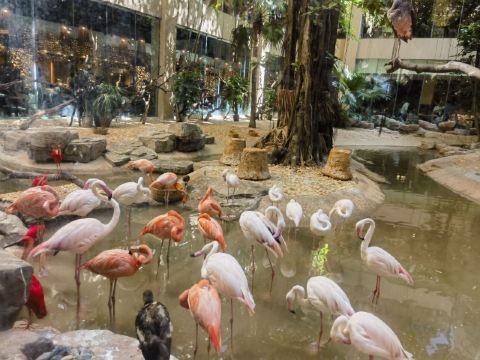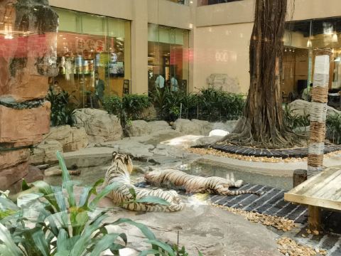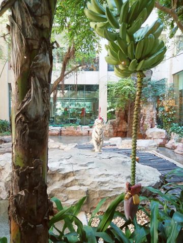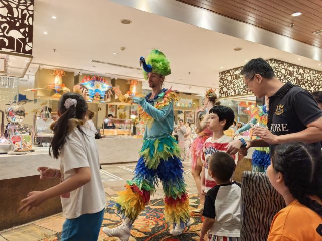 白虎自助餐厅可谓是大名鼎鼎,位于长隆酒店,是全广州最大的主题自助餐厅。全落地玻璃的设计,窗外即是动物岛,一边是白虎,另一边是火烈鸟。另外餐厅还设有童话剧表演,还有小丑可以合影,所以深受孩子们的欢迎。靠窗的动物区一般都需要提前预定。。餐厅有300多种美食,在一饱眼福的同时同样大饱口福。