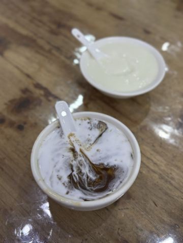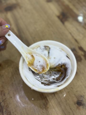 广州的最后一餐,来吃个西关夜甜品 两份甜品只要25,在上海只够点一份呀! 🍮沙湾姜埋奶 叫了热的姜埋奶,好喝哎,一点点辛辣的姜味,细腻的温柔的奶香😋 🥥椰汁马蹄沙 马蹄沙+椰汁 ,冰冰爽爽的喝起来很畅快。 下次还会再来的