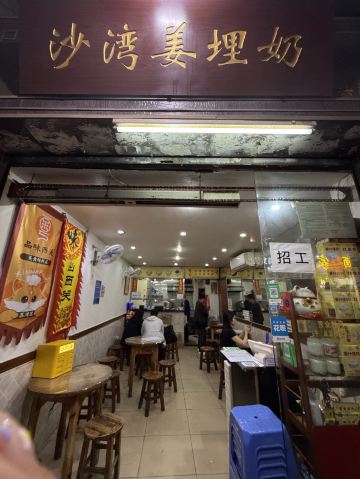 广州著名的甜品姜撞奶,其实原本叫做姜埋奶,最早就是源自沙湾,这家是用的最传统的做法,姜味浓郁辛香,奶香浓郁,传说完美的姜埋奶是可以刚好托起汤匙的,在这家吃的时候可以试试。