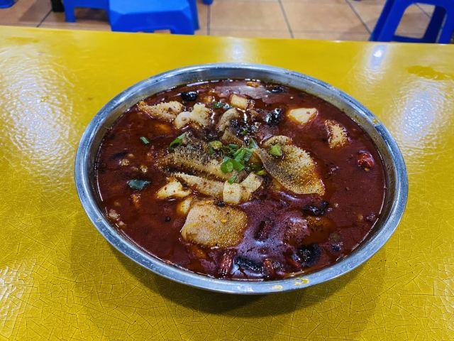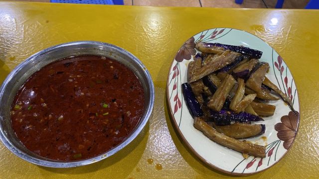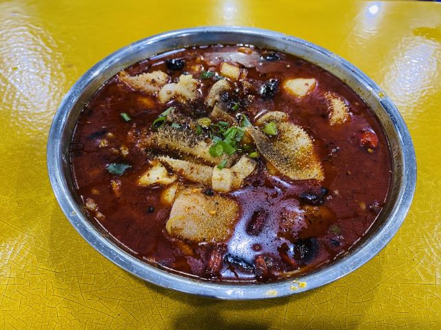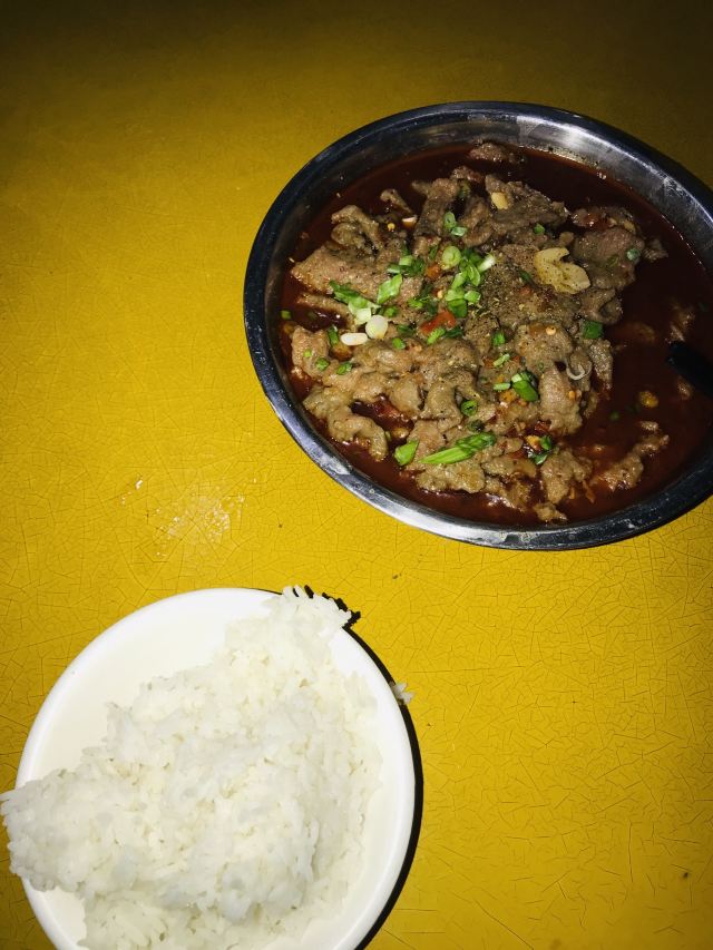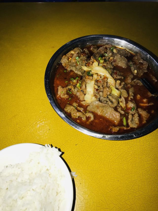 月印苍穹一个各方面看都很普通的饭堂居然能入吃货的法眼,的确值得去探寻一下。我是看网上别人的推荐才知道有这么个去处,周末中午找到重庆大厦后,碰到两个人也是专程开车过来觅食的,大家找了一圈才找到饭堂,主要是之前一直以为找到重庆大厦就能看到饭堂,原来两者不在一个地方。高德地图、百度地图上的标注是比较准确的,尤其高德地图,地铁从区庄C口出,然后在地图上搜索“重庆市人民政府驻广州办事处职工食堂”(不要搜“重庆大厦”),导航过去就行了。按道理周末的政府机构饭堂不应该有什么人,但他家却有不少食客慕名而来,生意热火朝天。吃完之后,总体感觉就是的确便宜,分量足,但食材质量嘛,也就配得上这个价格,想捡个大便宜,恐怕也有点难。 【水煮牛肉¥32】这是本店网友推荐第一的菜,看着红其实没有那么辣,看着端来一盆肉其实底下都是豆芽,但我觉得不像是真牛肉,吃起来很粉、没有肉的肌理,像是牛肉粉和一些肉碎调匀了做成了牛肉的样子,实际上也没啥牛肉味,并不是因为嫩肉粉加多了所以吃不出牛肉的筋道,而是口感就不太像肉。32块钱还想吃到这么多牛肉,的确不现实,所以出品和价格相符。 【蒜泥白肉¥22】川菜不熟悉,以为这是一个正菜,原来就是个凉菜的样子,小碟子拿上来,也没几片肉,但味道调得很香,看着肥肉多但因为是凉菜也不腻,再说也没有几块肉,没感觉腻就吃完了,总之是挺好吃的,推荐。 【木耳肉片¥25】这盘分量大,肉也挺多,炒得还行,肉应该确实是猪肉,但还是淀粉加多了吃不出肉的口感,虽然比牛肉强点。虽然两个荤菜都不满意,但价格的确实优惠,分量也足,口味也还过得去,有机会还是会去试试其他的菜。