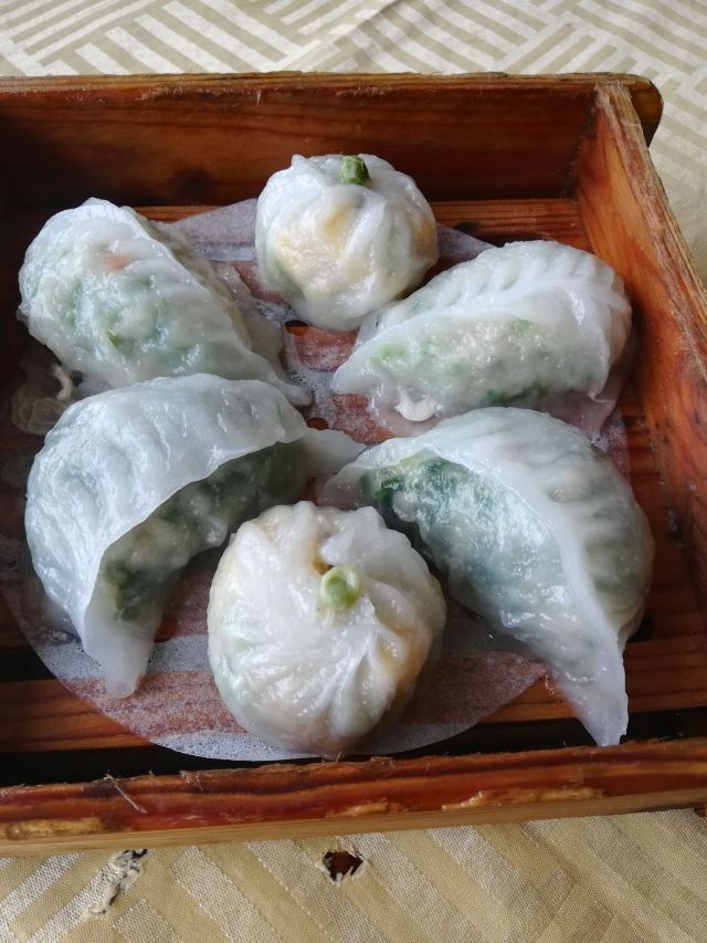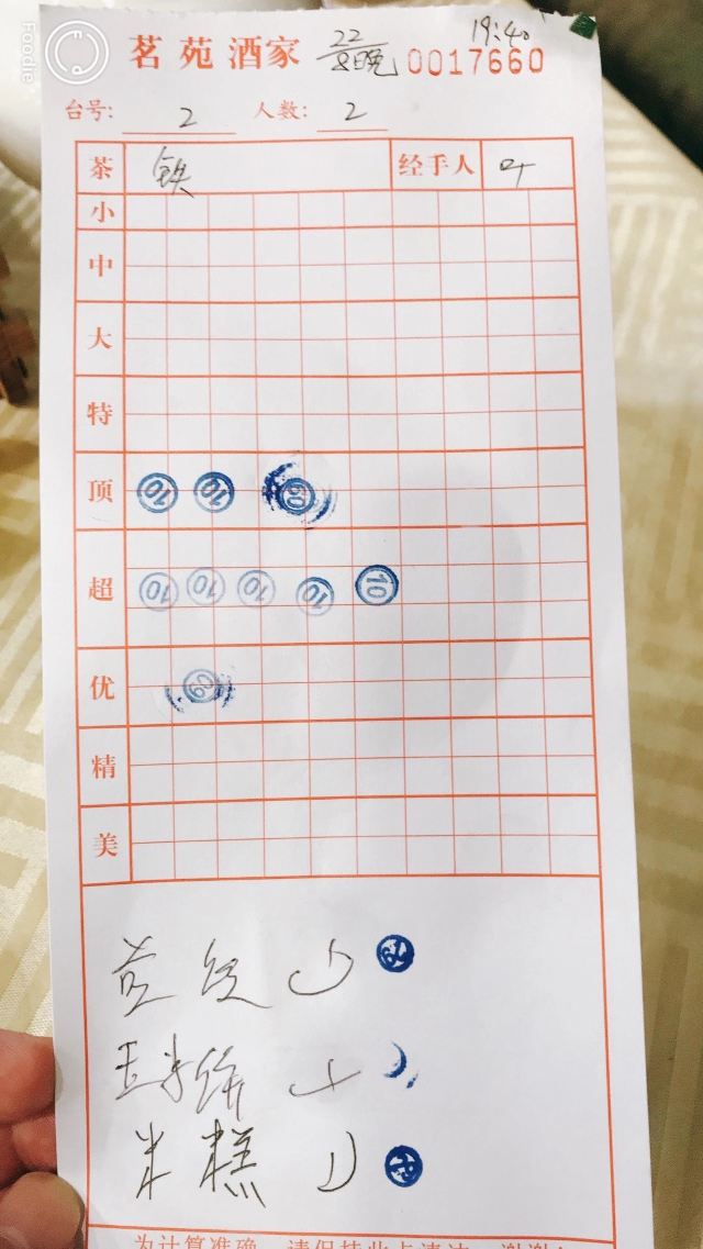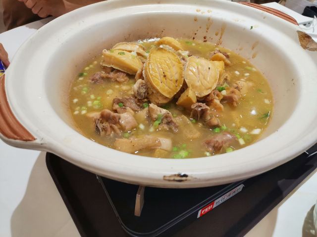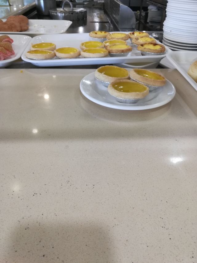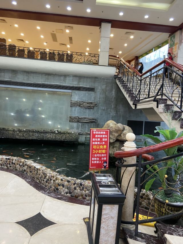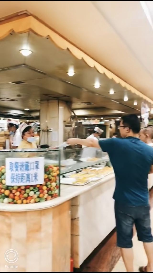 听人讲话呢间酒楼食嘢平,于是揾日行完天河公园就过对面食饭,茗苑酒家就喺brt上社站边,上社个牌坊隔离,上二楼,午市有得点菜饮茶,到2点。晚市点心好似话均一11蚊。 二楼大厅几大下,加上非常时期无大台,全部都换晒二人台或六人台,台与台之间间隔好宽松,一台客最多得4人食饭,所以大厅环境仲系唔错除左有只乌蝇飞藜飞去,大厅边一排落地玻璃,望见对面天河公园。茶位最平3蚊,普洱茶,大厅中间个度有个取餐区,点心粥档都喺个度,自己挪张点心卡取餐,再喺个卡度盖章——传统茶楼风格! 小点好似喺7蚊,升一级贵2蚊,凤爪超点17,大部分茶客都会食,鸡脚都霖,个人感觉稍稍辣左d。 三式饺,优点19,虽然喺最贵一个,不过分量唔少,3种蒸饺一共6只,玉米猪肉饺、韭菜猪肉饺、荠菜猪肉饺,最好食喺荠菜猪肉,不过包饺子既澄面有d坨——蒸到过晒火,无左澄面既爽滑口感。 牛腩啫猪肠粉,超点,萝卜牛腩生菜猪肠粉,铁锅热辣辣上,味道调得好,呢个性价比好唔错。 最后喺蛋挞,三只顶点15蚊,一藜冻冰冰二藜皮都唔松化,呢个点心唔推荐。 4个点心连茶位埋单74,喺天河藜讲算抵食,落二楼先发现楼下有一池锦鲤,影个相先。