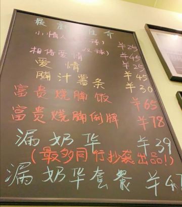 已经开业十余年的一家茶餐厅,店面不是很大,环境布置保持港式茶餐厅一贯的传统干净明亮。大到厅堂,小到洗手间,都洋溢着浓浓的港式味道。其中洗手间尤其值得一提,除了正在使用的厕纸——“夕阳厕纸”,另外还有一卷备用的厕纸叫做“救命厕纸”。 这家的漏奶华非常出名,香醇浓郁,让人回味无穷,而且份量很足,是闺蜜朋友喝下午茶的好去处。一开九西多士、大哥特色干炒牛河也是这里的口碑特色菜,不妨去试一试。