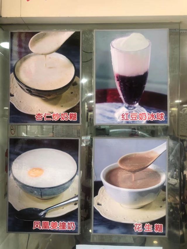 原味炒奶糊,沙湾姜撞奶,芒果椰汁双皮奶,杏仁炒奶糊,椰汁红豆双皮奶,凤凰炒蛋奶糊,椰汁香芋炒奶糊,汤圆芝麻糊,香芋炒蛋奶糊,香滑芝麻糊,大良双皮奶,双皮奶