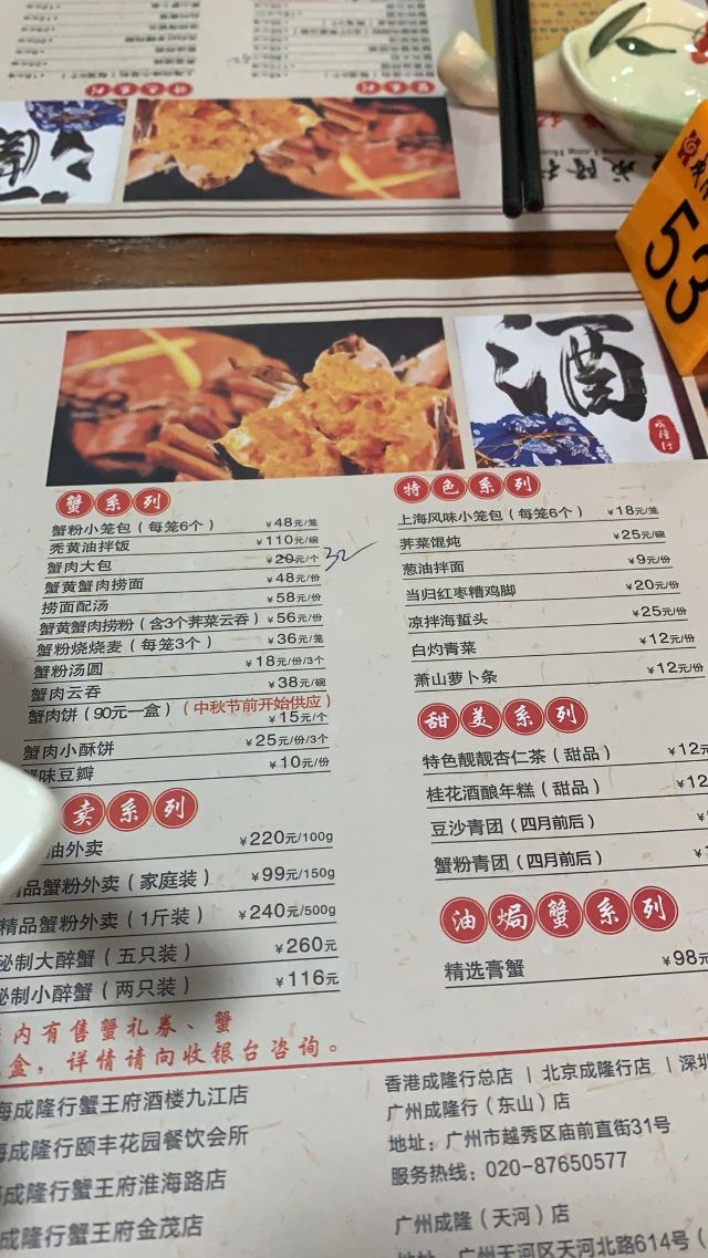 秃黄油拌饭,蟹肉捞面,六月黄,当归糟鸡脚,蟹粉小笼包,蟹黄拌面,大闸蟹,秃黄油,奄仔蟹,蟹肉大包,生腌醉蟹,蟹肉馄饨,精品膏油蟹,花雕酒,姜茶,风味小笼包,蟹粉小籠包,上海黄泥螺,凉拌舟山海蜇头,肥美奄仔蟹