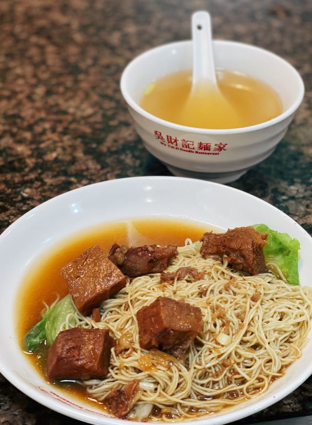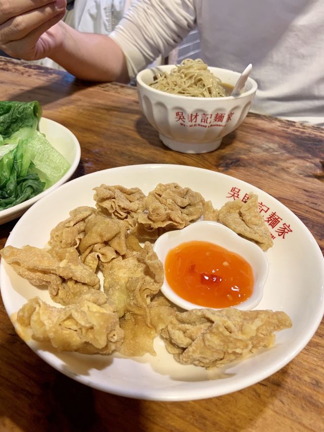 Wu Cai Ji Noodle Restaurant怀旧老店已经越来越少,出品不算很特别,主要就是情怀。 开在小巷里,想停车比较困难,醒目的招牌下承载着多少人的回忆。 点餐和制作区装修比较简陋,点完单可以到对面找位置坐下,用餐区的装修比较古色古香。 怀旧锦卤炸云吞 都是必点,其他就看个人喜好。 桌上有酸萝卜,吃面记得加点,萝卜偏咸,根据个人适可而止,别浪费[调皮]