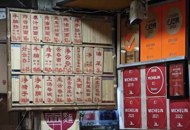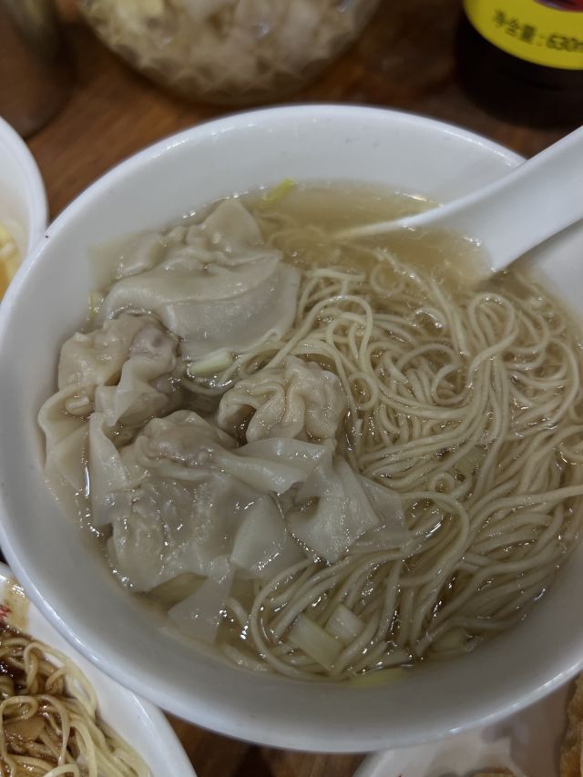 藏在曲折老巷里的传统老店,可谓是“酒香不怕巷子深”的典范。一进店里就是老店的气息,墙上还可以看到各种媒体报道的照片。牛腩捞面、净云吞、炸云吞的味道都特别地道,几十年如一日,量大料足,价格也是相当的实惠。