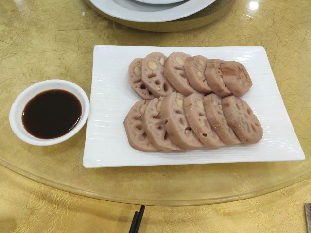 魔女锦鲤国庆假期,上海的朋友来广州游玩,带他去吃广州比较正宗好吃的烧鹅,第一时间就想到了位于长洲深井村的姚林轩。据说深井烧鹅也是从深井村传出闻名的。 由于系假期,提前电话预计左一间小房,为左可以吃倒新鲜的烧鹅,中午11点就去到点菜。烧鹅系必点的,另外再点左几个家常小菜。因为烧鹅我们要求要新鲜烤好的,所以等待时间会比较耐。 白切莲藕,莲藕中间酿了绿豆沙,莲藕好粉甜,不用蘸豉油,直接吃它原来的甜味就很好。但上海朋友接受不了这种吃法~~~ 上汤桑叶,蚕宝宝吃的东西,可惜秋季的桑叶不够嫩。 卤水金钱肚,卤水的味道不错的。 白灼鲜鱿仔,价格有d贵,75元~~~还算是新鲜的。 招牌香葱骨,中规中矩。 最后压轴烧鹅,要了半只,新鲜烤上来味道依然是这么好吃,皮稍微烤得有d脆,带走少少的油脂,但不会好肥腻,腌制的味道也刚好。 满足的一餐。
