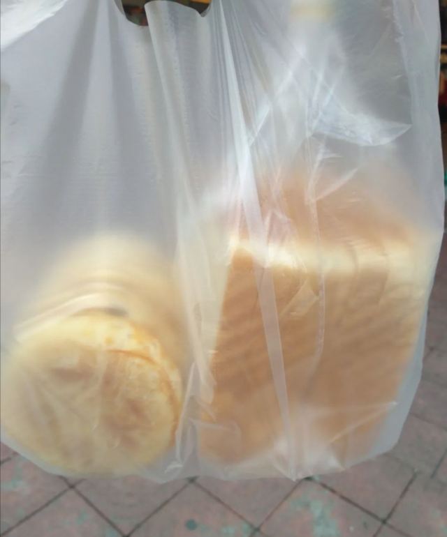 系东圃食饭,坐车前买个面包咯,车站附近有间麦卡尔蛋糕坊,就系普通既面包店装修,中间个包柜转左一圈,佢卖个d切片吐司有全麦、咸既、甜味,要包甜芳包8蚊,7片,第二日食,每片都切到薄薄,加左糖吐司甜甜地,感觉唔算平就食一次甘多咯。