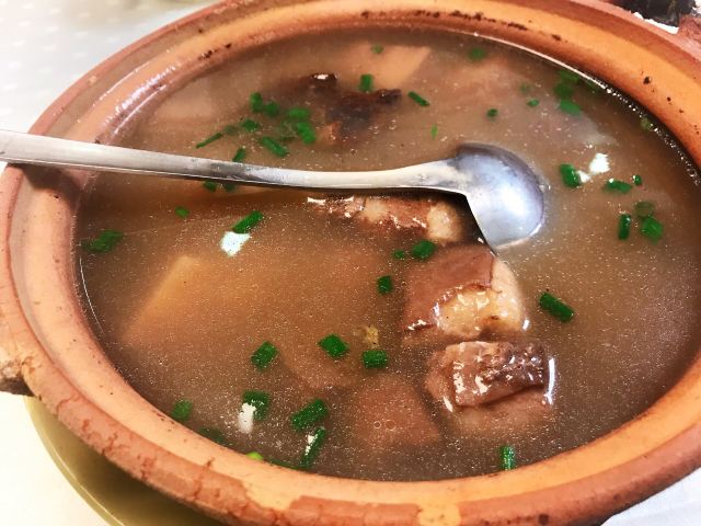 DongXing Restaurant (TianHeBei)中午朋友在东兴饭店·侨乡厨娘(汉风国际店)请吃午餐。 这家餐厅位于天河北路6-8号汉风国际大酒店1楼,附近有公交车广州大道中站,地铁站相对会远一点。 这家是一家老店,主打广东五邑地区的菜品,以黄鳝饭最著名,还获得2018年米其林餐厅的荣誉。 餐厅不算很大,有大厅和包间,装修比较一般。 【黄鳝饭】要了一斤的,大约有六七碗,饭是一粒粒的,很香,黄鳝丝很多。锅底的饭焦很多,非常爽脆。 【莲藕煲】用了猪肉和柴鱼块,煲出来的莲藕汤鲜甜,莲藕很粉。 【炒笋干】笋干切成条状,用五花肉来炒,又嫩又香。 【沙姜鸡煲】用瓦煲上来,鸡肉很多,又香又滑,沙姜味道浓郁。 【冬瓜鱼头】鱼头煎过,用冬瓜来焖,非常入味。不过分量略少了一点。 【炒番薯叶】用蒜蓉清炒,炒的清清绿绿的,镬气十足。