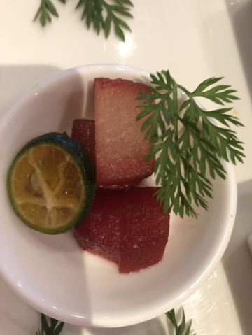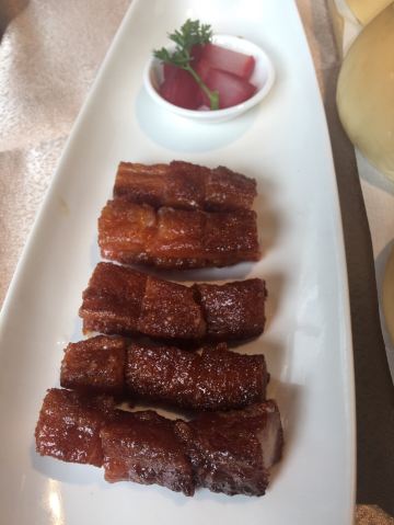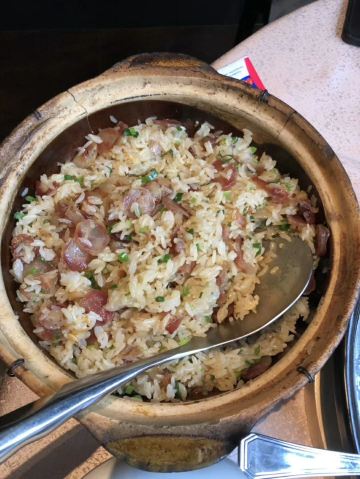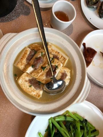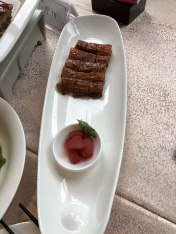 SophyJiang漫旅绘自炳胜收获米其林一星后第一次过来,人气依旧火爆,来得那么早,也安排到了三楼。 [服务]更好了,一路有人打招呼,进餐过程中主管员工都很积极主动,有眼力。 炳胜出品一向稳定,此次菜品却有些不尽人意。 「豆豉酱油鹅」肉质老,别说高龄父母,连我都咬不动,不过主管很好,立刻主动帮换了细嫩的「炳胜盐水真味鸡」,并且体贴地再次过来询问口感是否可以。 「秘制黑叉烧」不如以前那么入口即化,糖有些焦苦。 「盐焗黄脚立」味道在线,鱼肉细嫩,份量少了些,老姜蒜头垫底占了大半锅。 「生晒金蚝烧骨粥」不功不过,中午只要拆鱼和烧骨两款,还是晚上来吃比较好。 「煲淋萝卜」寡淡了些「清淡银鱼仔蒸丝瓜」不错,上面配料好吃。 摘星不易,保持更不易,希望下一次能获得好一些体验。