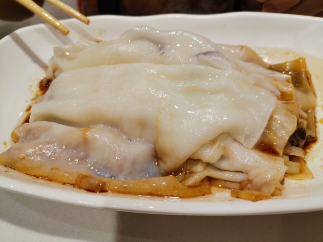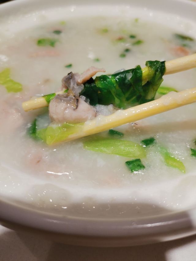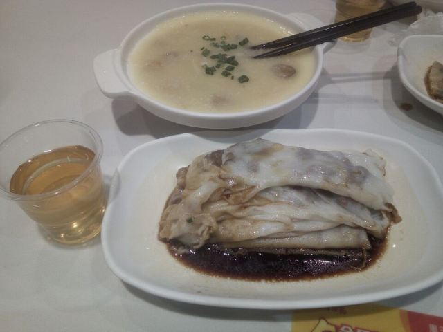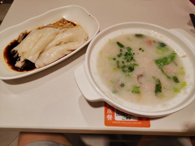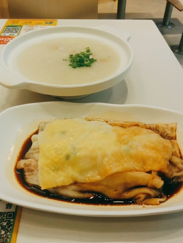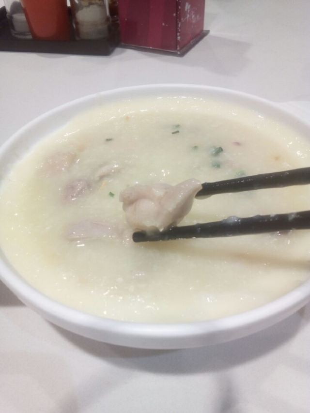 Huahuilachang (huajing)“华辉拉肠”有一段时间没去吃了,最近有促销活动,就去买了一个套餐,包含一份“斋肠^”和一碗“生菜鱼片粥^”,店员态度友好,还提醒“鱼片粥”要注意细小的鱼刺,感觉挺贴心的;“斋肠^”也不是啥都没有的,而是卷了“冬菇”、“韭黄”的肠粉,味道不错,特别是捞肠粉的“豉油”好好味~