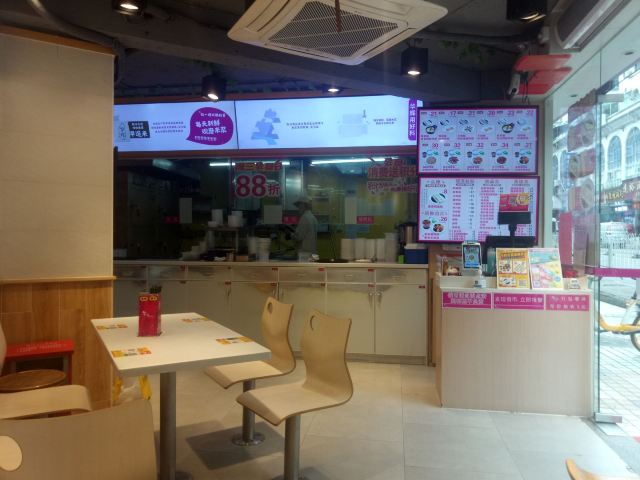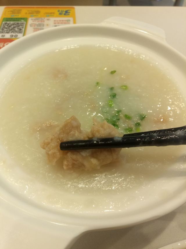 送你一朵红花这家“华辉拉肠”店内的空间布局不是很方正,坐在一角点了一个套餐,“鸡蛋拉肠”还有一碗“生菜鱼片粥”,总体味道还不错,性价比蛮高的~