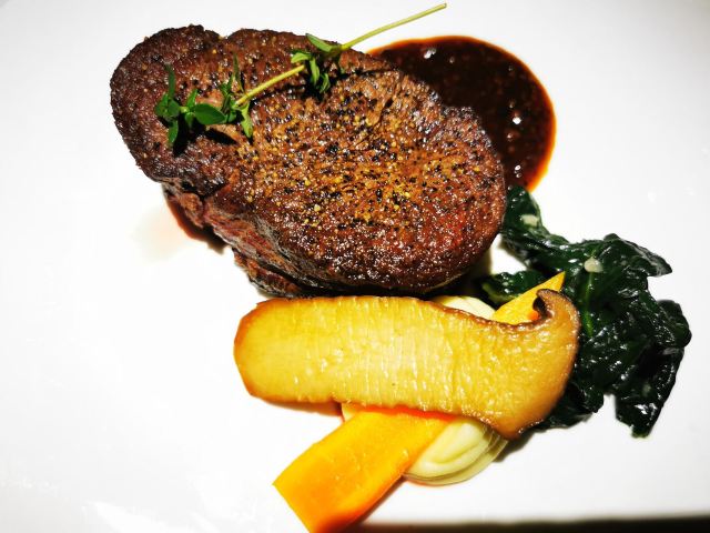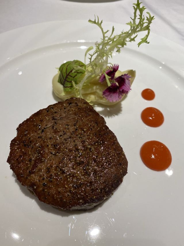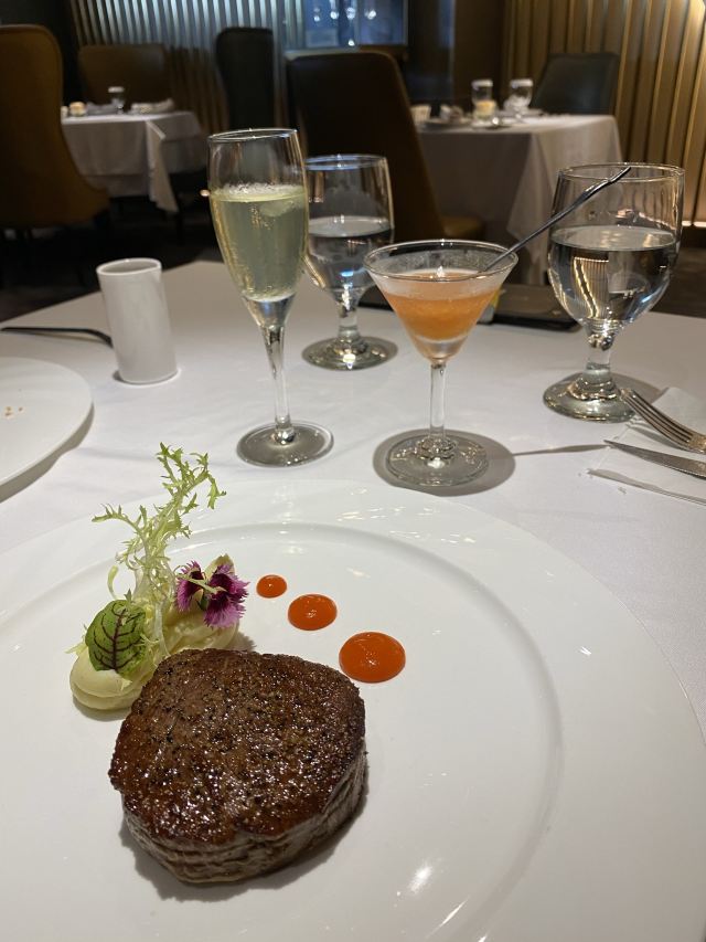 爱旅行的猪仔临时起意想过来吃扒的,只提前了两个小时订位,好在订上了 去到发现原来有很多过来庆祝纪念日之类的客人呢,因为餐桌上都是店员用心摆造的各种庆祝图案和造型 感谢服务员贴心帮忙留了窗边的位置,虽然没什么景观可看的,不过明亮的窗边位坐着个人感觉还是比靠里面的位置要舒服 套餐的内容有二选一的东西,服务员会询问客人的口味和习惯给出建议 每一道菜的摆盘都很漂亮,颜色搭配也很正,我的扒出来后个人还是有点嫌生,服务员看出来不妥立刻过来说帮忙翻热了,服务我给120分 一分钱一分货,牛扒的味道和口感确实比一般的店要好很多,即使按我的要求处理得比较熟也不会干韧 香颂玫瑰露不加冰貌似颜值有点打折,但味道还是不错的 有免费停车,不限时,这个挺好,毕竟来这里大部分人都喜欢慢慢消磨时光