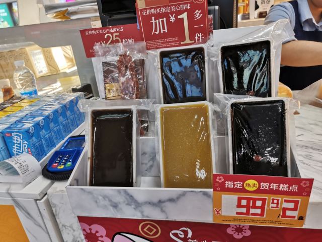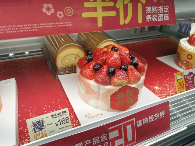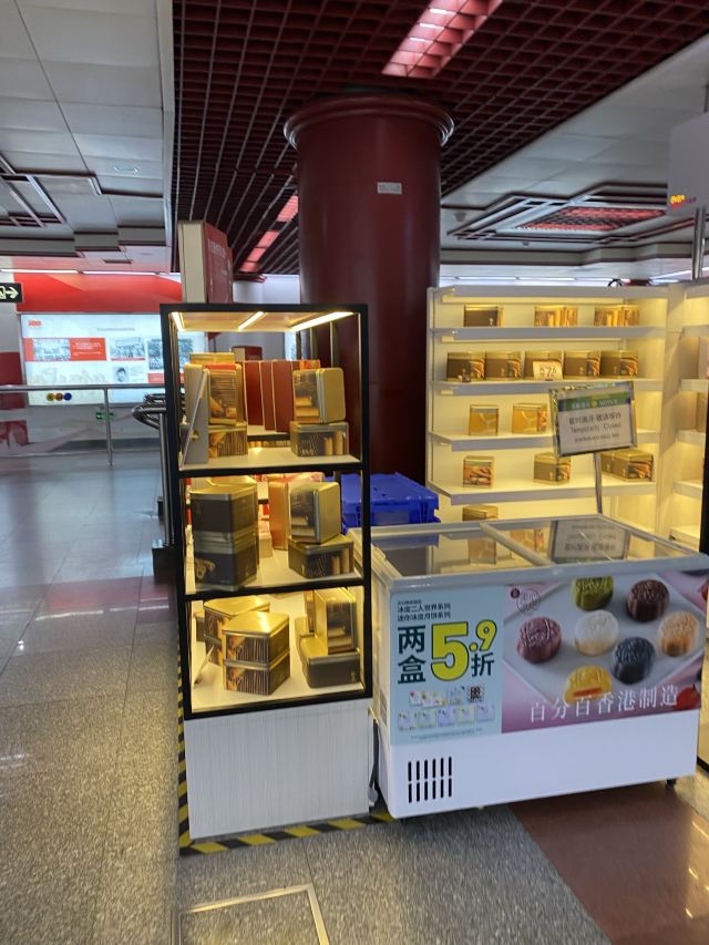 农讲所地铁站里面的美心蛋糕 小小的柜台,摆了超级多的产品。 蛋糕基本上都有折扣,蛋糕卷第二条半价,活动不错。 现在出了不少新年限定的蛋糕很可爱,可以提前预订哦!