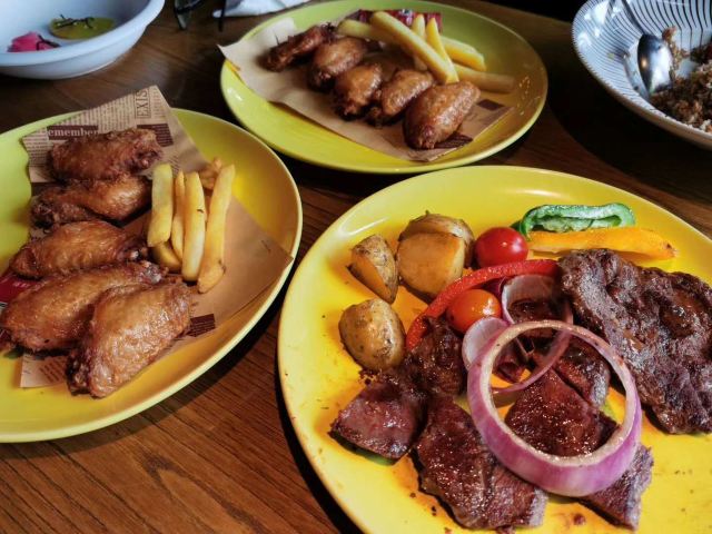 西冷牛排,泰王炒飯,泰皇炒饭,铁板西冷,黑糖牛奶布丁,泰皇炒飯,绿茵阁烧焗大什扒,田园沙拉,无花果柑桔茶,柑吉茶,芝士肉酱焗意面,日式烤鳗鱼炒饭,蒜蓉西兰花,嫩牛仔扒