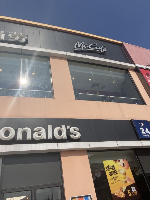 在前面的花铺蹭网络晒太阳挺好的。麦当劳在高德汇里面有三层楼的建筑,24小时营业,适合各种人群生日party等等,现在还加了咖啡,内容比较丰富。