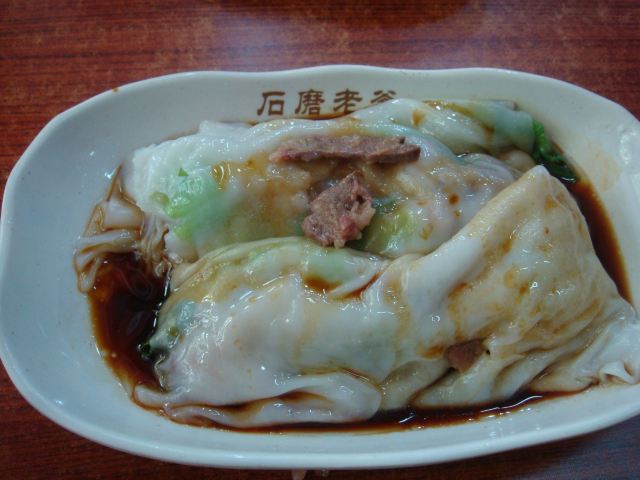 石磨老爹(百灵路店)位于百灵路123号,附近有公交车站,交通便利这家店店面不算小,有两层,装修的古色古香。 出品是西关特色小吃,像豆浆、豆腐花、杏仁糊等,都是他家每天用石磨磨出来的,特别新鲜、健康。炸鱼皮,经典西关小吃,鲩鱼皮炸的很酥脆。肠粉品种多样,拉肠皮不算薄,不过里面的馅很多。