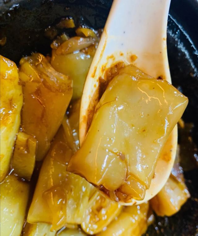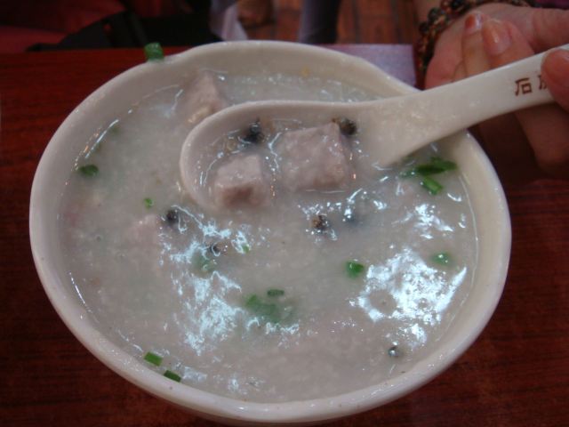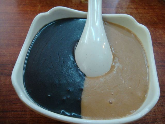 魔女锦鲤石磨老爹位于靠近市一医院附近的百灵路口。店铺很显眼,很容易就能找到了。 这里分上下2层,由于中午去,客流量不是太多,因此2楼没有开,店铺都还算挺大的。环境还挺干净整洁。这里比较靠近医院,估计除了平时街坊的帮衬之外也方便医院里的人买吃的。 来这里主要都是想尝试一下他的特色甜品,听说他家每天早上都会用石磨自己磨制豆制类食品,如:豆浆、豆腐花、杏仁糊等等甜品的原料。 由于早上没有所以先点了一个拉肠和粥垫垫肚。 要了一个陈皮牛肉拉肠,陈皮味不是很浓郁,估计都是要来劈腥,增加拉肠的甘甜吧,牛肉还挺嫩的,但拉肠本身就稍微逊色,拉肠皮有一点厚身,不够薄滑。 另外点了芋头螺肉粥,是这里推荐的一个粥,很久没有吃过螺肉的粥了,真的不是很多地方都有,粥挺绵滑的,配搭起螺肉还挺鲜甜的。 吃完中午饭来个饭后甜品,虽然石磨老爹不是一间糖水店,但他家的糖水却有几十款这么多,特色的甜品有芒果木桶豆腐花、杏仁黑芝麻糊、花生芝麻糊。 杏仁黑芝麻糊,都是店家采用原材料自己磨制,一半杏仁糊,一半黑芝麻糊黑白交错,可以分开吃,也可以混合在一起吃,各有特色,味道都很香浓,粉磨得也比较细,因此口感也比较滑畅。 花生芝麻糊,也是花生糊和芝麻糊各占一半,黑色混合黄色,花生香浓的味道齿颊留香。味道很浓稠,搭配起来吃别有风味。 最后不得不提的是芒果木桶豆腐花,用一小木桶装着,材料有红豆、豆腐花、芒果,红黄白三种颜色,色彩丰富。豆腐花滑滑嫩嫩的,很浓郁的豆香味,红豆绵绵的,芒果很清甜,三种口味夹杂在一起,夏天吃上一桶,很舒爽。
