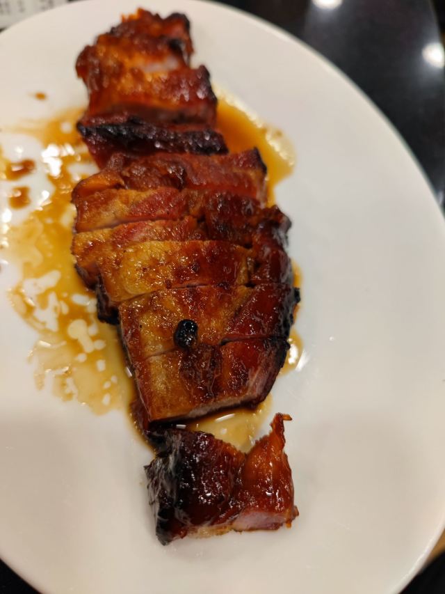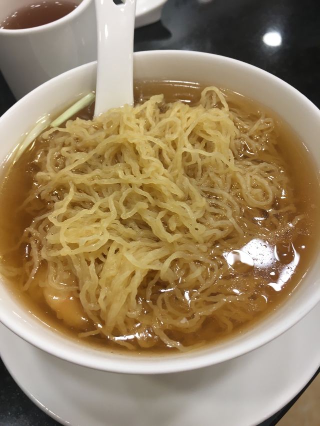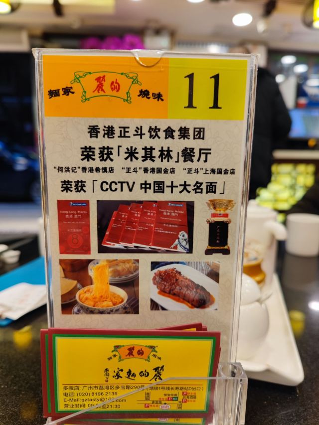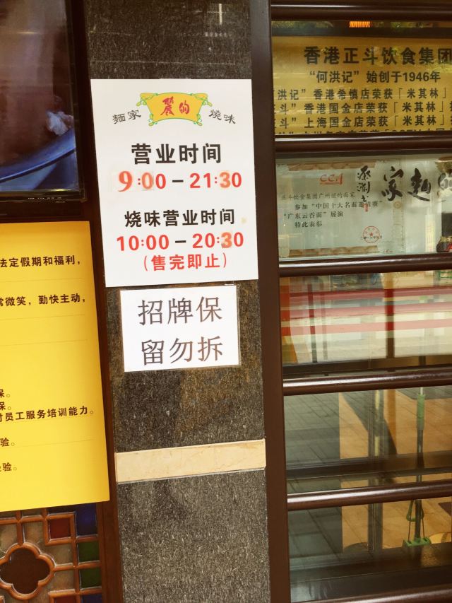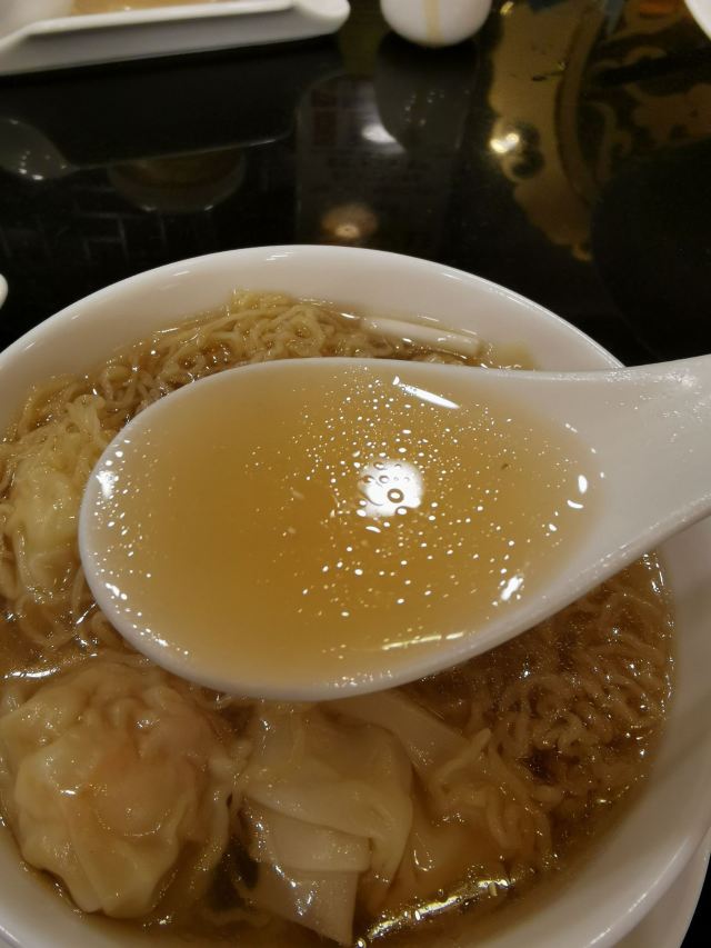 该店由香港“何洪记粥面专家”的老板何冠明与饮食节目主持人黄丽梅共同投资,食评家蔡澜出席开业庆典。明星光环笼罩之下,餐厅的出品味道也没有让吃货们失望。云吞大小适中,内馅用的是河虾和半肥瘦猪肉,汤底用大地鱼、猪骨、虾籽经长时间熬成,香浓味美。除此之外,烧鹅和叉烧也是这里的招牌。烧鹅皮脆肉嫩,叉烧入味多汁,一定要尝一尝。