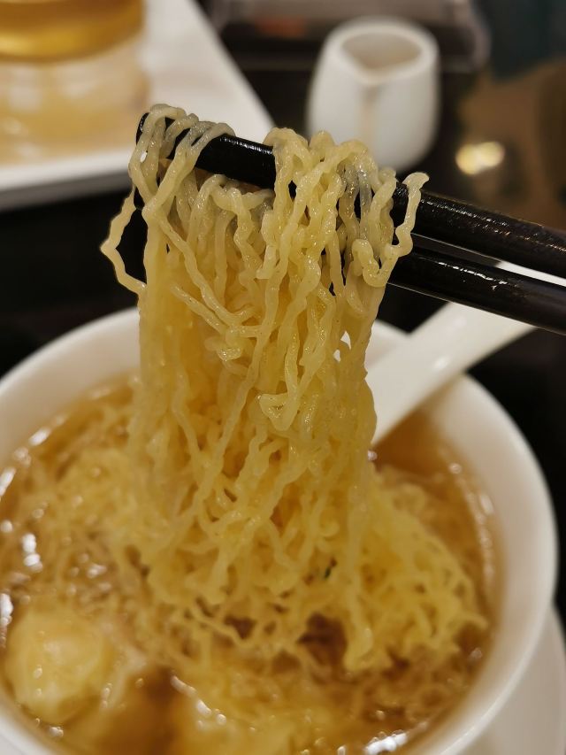 单品 ⭕️ 鲜虾蟹子云吞面,云吞垫起竹升面,避免面条在面汤当中坨掉~云吞里的鲜虾🦐 超爽口!新鲜入味~ 面汤大地鱼和虾味浓郁,竹升面爽口弹牙!吃完还想继续吃,超喜欢的!!