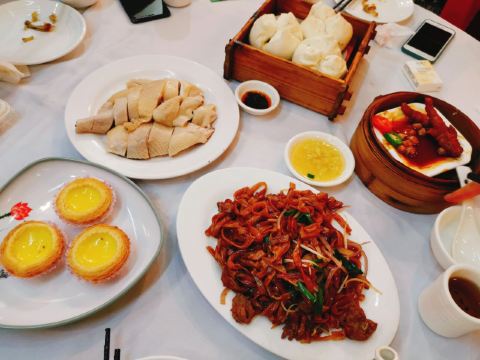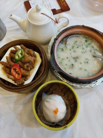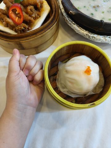 广州游玩十分推荐百味鲜虾饺,有拳头那么大,发到朋友圈大家都十分惊叹。店里的食客以本地人为主,店堂还挺大的。店员都是些年纪大一些的阿姨,桌布上有很多洞洞,却令人倍感亲切。菜品的味道虽不能说惊艳,但都还不错,价格也不算贵。点上一壶茶,再配上几个小点,体会广州的早茶文化,真是惬意得很。