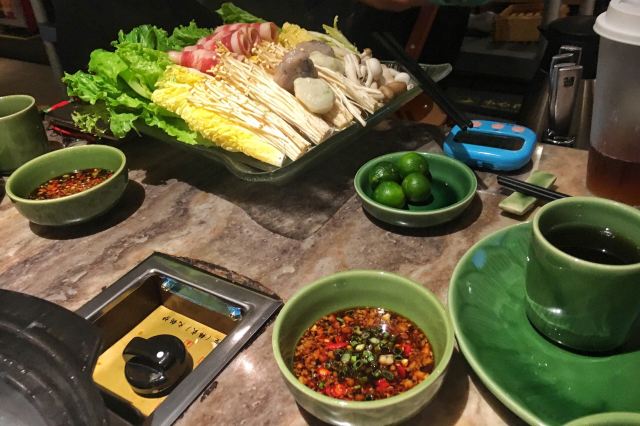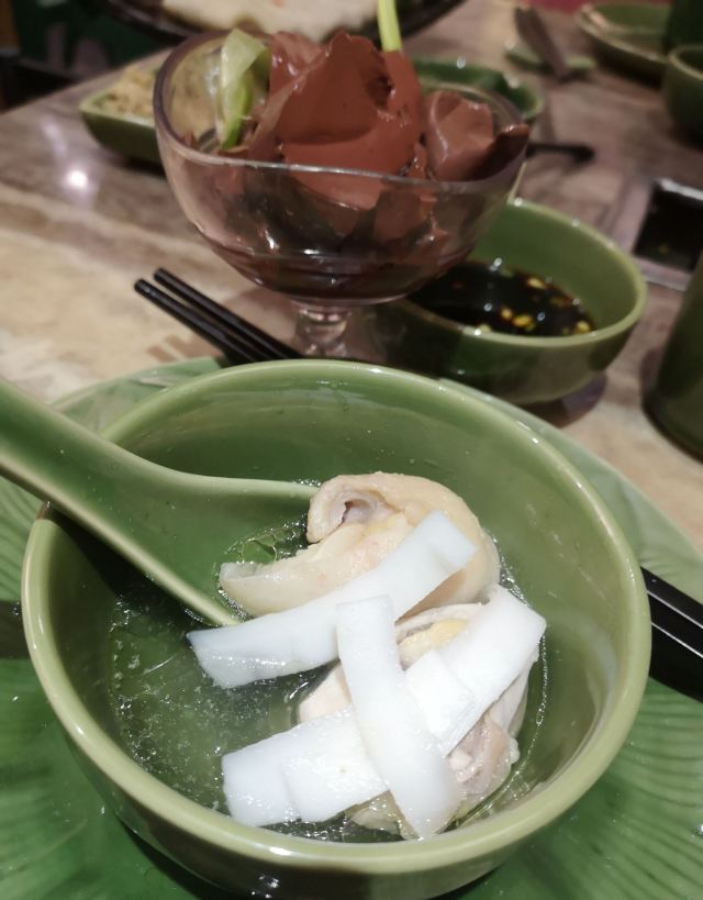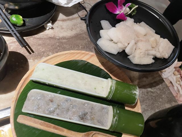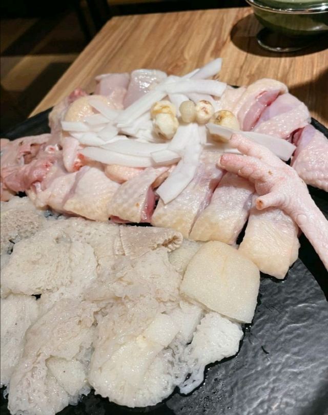 迪肯孔裴矩「原味椰子鸡」🥥🥥🥥店员介绍用的是海南文昌鸡,开锅3分钟就可以吃了,肉质软嫩,提前一下:开锅先喝汤再吃肉🐤🐤🐤 灵魂酱料:沙姜末+小金桔+小米辣+酱油 一个字:绝了🌶🌶 「文昌鸡」口感超嫩 虽然是鸡 但感觉不一样 「海南芦荟」滑滑的 没有什么味道 应该是养生吧 「牛肉拼盘」造型是很大气的 四种肉搭配:牛肉粒+肥牛+牛舌+牛腱子 号称牛肉F4 两个人就不用点了 量大吃不完🥩🥩🥩 「菌菇拼盘」虫草花+白玉菇+鸡枞菌+绣球菌+黄金脆新鲜 多煮下 甜甜的 「肉丸拼盘」3种丸类的组合 肉丸 虾丸 鱼丸 点多了 没吃完🍡🍡🍡
