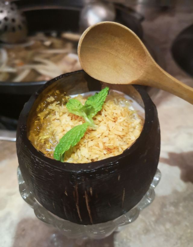 迪肯孔裴矩最近我又挖到宝贝了。提到它,脑子里就下意识冒出这些词汇😋好味,体验棒,性价比高! 椰子原味锅底是它家的灵魂,一锅标配三颗海南椰青,现场劈好倒进锅里,不加一滴水,还没煮开就闻到鲜味了,真是太棒了! 店员小姐姐说了,来这的客人,吃鸡前都会先盛一碗汤喝,纯椰汁煮开的椰子鸡汤,椰香味比其他家的更浓。尝试郎一下,果然如此哦!真是太赞了! 还有云南牛肝菌汤也值得一pick,一大盆菌菇往锅里怼,这养生局也真够拼的哈哈哈h 在饭后甜点里,奶香椰汁盅最深得我心,冰镇后的爽弹口感,大夏天吃究极舒服,建议餐后来上一盅,你会爱上的,总结一下,超赞赞赞!😋