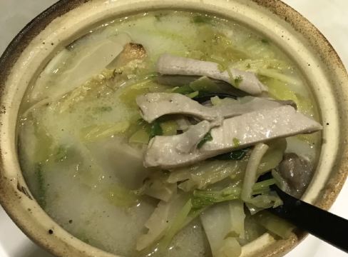 作为潮汕人的我一早就听说过这一家餐厅了,那天带着家人过来吃饭了。餐厅位于兴盛路上,店铺不是很大,但是坐满了客人。看着菜牌,每一样有潮汕特色的菜我都想吃,猪肚酸菜煲好好吃,我每一次回到老家,都会吃这一道菜,酸菜比较爽口,猪肚很鲜嫩,再放一些胡椒粉,冬天吃很暖胃。菜花炒肉卷,看上去只是平平的一道菜,一道家常菜,但是肉卷是我吃过最好吃的,十分有肉味。