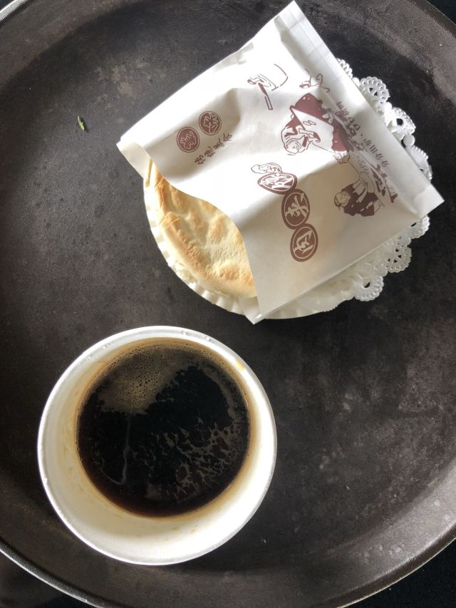 這家咖啡館蠻有意思的,還有肉夾饃供應