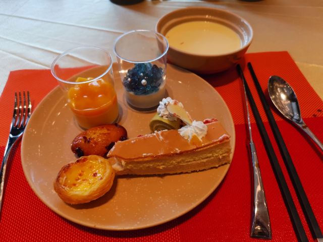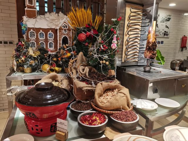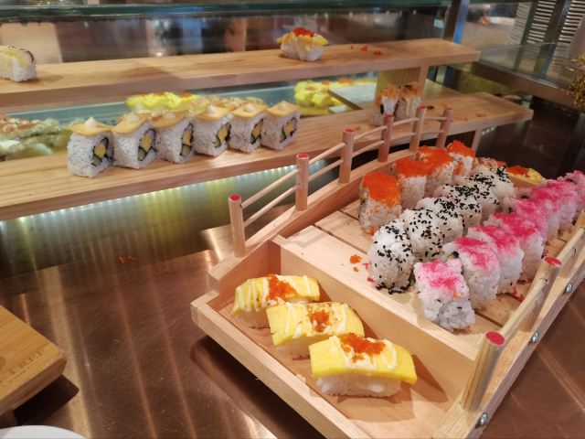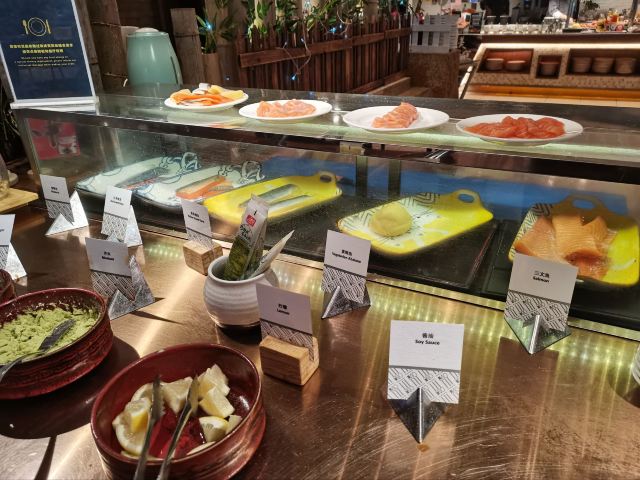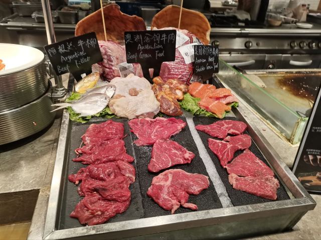 三文鱼刺身,现开生蚝,榴莲雪糕,吞拿鱼刺身,牛扒,蛋挞,布丁,CUPCAKE,马卡龙,海鲜,葡挞,蓝莓优格乳,绿茶雪糕,黄色芝士蛋糕,布朗尼,烧腊,羊扒,苹果批,西式汤,雪糕,不限量海鲜,全日自助餐厅,小火锅,焦糖布丁,酸奶,朗姆葡萄雪糕