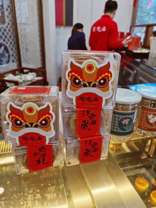 七七喝喝🌈和朋友在北京路逛街👛,行攰了,附近搜搜睇到了陶陶居饼家,里面的点心简直让人一见倾心❤,立马过去打个卡 🌈步入店内,扑面而来浓郁的岭南风情,仿佛被带回到了儿时的点心店,无论是花格子砖💠,实木楼梯,青花瓷的摆件,都让人赏心悦目,接着看到橱窗里面刚出炉的点心🥮,我就一眼沦陷了,这也太美了吧,一个个造型优美,颜色丰富,更像手办公仔🧸,哪像食物呢?于是我哋各自选择了自己喜欢的几款试试 ✨彩虹酥 颜值爆灯,一层层酥皮,每层颜色都不尽相同,仿佛🌈彩虹一般,欣赏了很久都犹豫不决,实在不忍心破坏这艺术品呀♟️最终细细切开,里面是🈵🈵的海盐蛋黄肉松,咸咸甜甜,口感层次超级丰富,必须轻拿轻放,这酥皮也太酥脆 ,真系唔知道师父怎么做出来的,真乃巧夺天工呀 ✨荷花酥 我超爱这款💖,果然像朵🌷荷花的造型,美不胜收!不小心稍微手重点,荷花酥的皮就破了,真系要精心呵护🤪外面很酥了,里面系椰蓉金沙馅,所以唔会太腻,能食到椰子的香甜,但是金沙略咸又会冲淡些甜腻,每一下咀嚼,都会有不同的口感 ✨蝴蝶酥 比一般的🦋蝴蝶酥大只些,一层层都很酥脆,上面撒了细细的绵白糖,迎着光线拿着,是通透的🌟,送入口中一瞬间就超级满足,那种香脆,秒杀了市面上同类产品 🎈眼馋肚子小,吃了几块就饱了,实在太爱了,买了💝礼盒带回家,让家人也试试,原来传统中式点心,也可以很美的‼ 🏠陶陶居饼家 📍禺山路37号39号 🚇6号线北京路站B出口