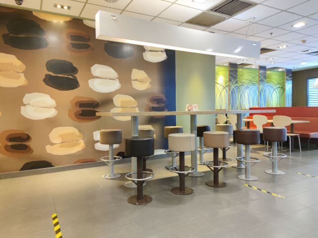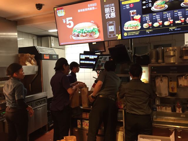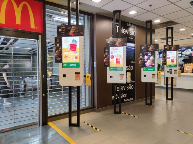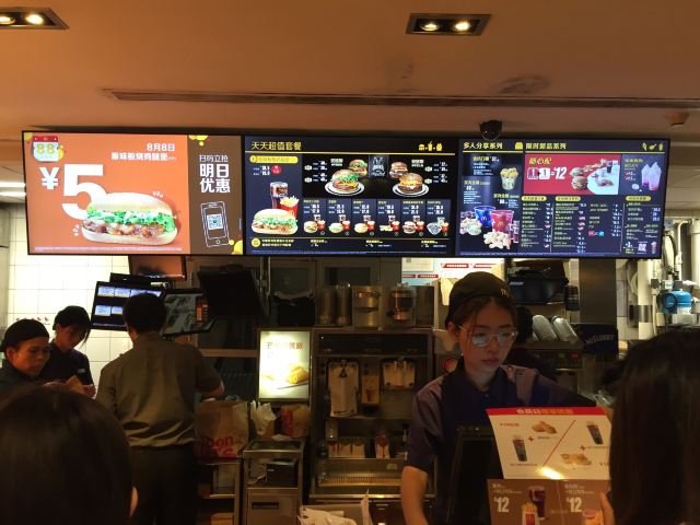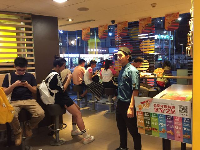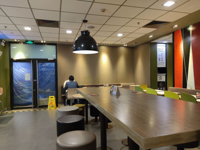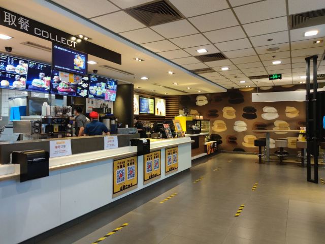 这家麦当劳的位置很好找,交通方便,可以通过店内的点餐设备点餐,也可以通过手机APP点单,简单方便,汉堡,薯条,炸鸡是必不可少的。