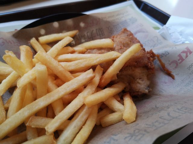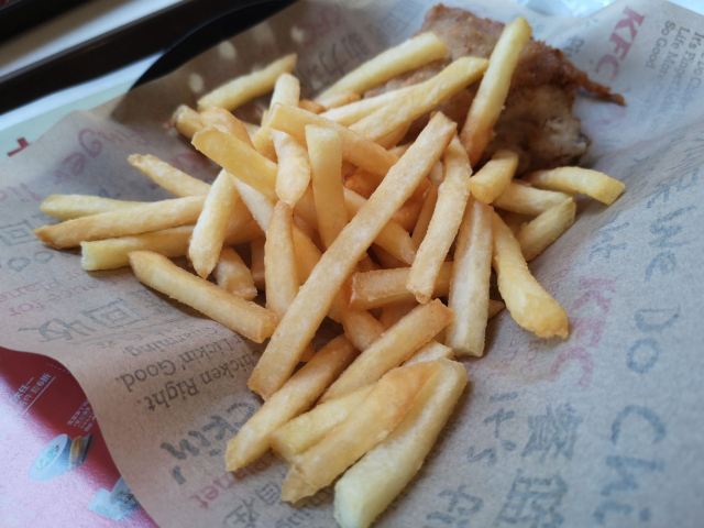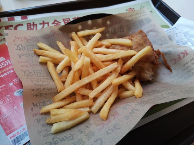 这家肯德基就在麦当劳甜品站的楼上,地方不错,不是特别的大,不过也是能够找到位置的,周天这边还是比较热闹,基本上都坐满了,但是不满意的就是这边的原味鸡十分的小块,不知道是整体都是这样子,还是单店的问题。 薯条就还算是不错。