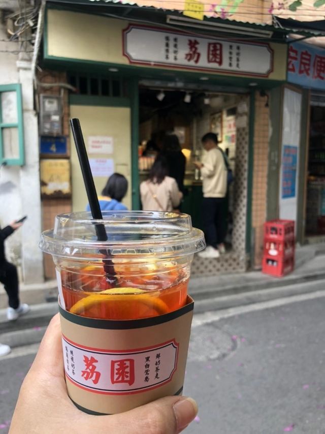 广州必打卡饮品店“荔园” 门面挺小的 位置不是很好找 在一个小巷子里 下午过去的时候排队的人超级多 很多都是慕名而来的 为的就是喝他们家的丝袜奶茶 店内饮品价格亲民 味道不错 性价比很高 「傳統絲襪奶茶」 一定要喝冻奶茶 因为他们家的冰块是用奶茶做的 这样冰块如果融化的话 也不会把奶茶的味道冲淡 茶味与奶味的配比不错 可以选择茶味重或奶味重 「錫蘭檸檬茶」 柠檬茶也是他们家的一大特色 味道酸酸甜甜 喝着很是解渴 茶味适中 不是很浓郁的那种 口感正正好好