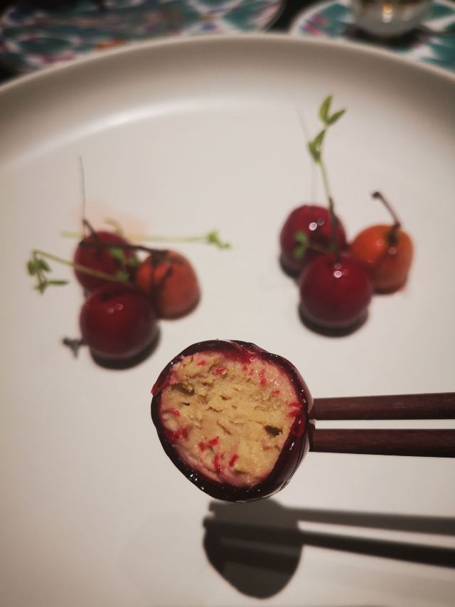 几丁不二北京烤鸭,可谓举国名菜,进京一定得去吃一次似乎已成标配。然而广东出去的老饕们,尝一次回来,觉得也不过此,似乎还没烧鹅好味。听说全聚德曾在广州开过分店,后来倒了。四季小馆是农林下路四季京未在流花展馆开的高端品牌,吃的是环境,是格调,是精致,是讲究,是情怀,碟头不大,人均一般150左右。 烤鸭,点了以后,整只鸭子上来,有师傅现片,码整齐,鸭架子可以拿去做椒盐,另收28。鸭皮片得薄厚刚好,蘸面酱吃,油香皮脆。包鸭皮的春饼,放在小屉子里,端上后还继续蒸着,这就是讲究的地方。 樱桃鹅肝,做得确实像樱桃,摆盘精致,还用干冰造些雾气出来,仿佛天上来的美食。此菜品份量不大,也就五六颗吧,造型诱人,吃到嘴里却是一般,并没给人留下很深刻的口感。 三杯鸡、贝勒烤羊肉,怎么说呢?味道很熟悉,比较正吧,这两道菜啊,应该说很多地方都有,没什么特别的。贝勒烤羊肉,口感跟葱爆羊肉极其像,不同的可能也就是多了个烤盘吧。 脆皮豆腐,感觉算是份量比较大的一道菜,有点中外结合的意思,但个人觉得吃起来口感也就那么回事。 啰嗦了那么多,估计各位老饕都有些烦了,就此打住。