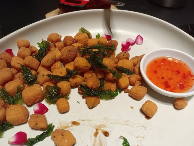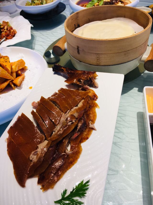 gm****in亲戚聚餐,食惯粤菜,第一次来这里试试北京菜,呵呵。酥不腻:228蚊/只,就系推荐嘅北京烤鸭,选用中细型鸭,比我响北京食嘅要细只,厨师想房间度现场片皮,鸭烤得啱好,的确达到鸭皮酥而不腻, 脆而不油,入口即化,的确一流,必须推荐。起皮拆肉之后,鸭骨架可以加钱俾餐厅加工,或者直接免费斩件上,可以打包翻屋企自己再整。烤鸭小料:8蚊/碟,各种配料悉数配齐。椒盐九肚鱼:59蚊,绝对推荐,九肚鱼滑嫩,面粉浆厚薄适宜,咬落外酥内嫩,送酒味道一流,个人觉得唯一缺陷就系椒盐后落,导致不匀,以至于,部分过于咸,部分就绝对美味。黄金炒饭:42蚊,相对于食惯炒饭嘅广州人来讲,呢个炒饭味道有余,特色不足,饭粒稍微过硬过干,导致成个炒饭口感一般,不过都可以一试嘅,呵呵。葱烧蹄筋:88蚊,推荐,蹄筋炆得绝对够晒“淋”,入口即溶,汁液一流,炆得时间绝对够,十分入味,大葱嗦晒嘀汁,如果你中意食葱,你绝对会中意呢味餸。老北京炸酱面:18蚊,额,介个肿么说呢,我只能话南北口味,导致我哋对呢个面都系一般,面同炸酱汁捞得完全融合, 每条面都沾满晒嘀炸酱,所以每条面都绝对味道均匀。可能系北方煮面做法,所以面好韧,筷子都夹唔断,呵呵,食起身带坚韧感,所以,见仁见智啦,呵呵。江雪糖醋小排:88蚊,估唔到系凉菜,呵呵,上台后,服务员会撒上木糖醇粉,排骨煮得好“淋”,老人细路食完全冇问题,糖浆略为过多,所以口感略腻。手掰豆腐煨牛腩:69蚊,豆腐绝对入味,推荐,以至于牛腩会觉得一般,大肉为多。大虾焗白菜:78蚊,不过不失,虾爽口,白菜都晒味,可以一试嘅。老北京小酥肉:68蚊,味浓而肉嫩,未试过嘅都可以试下。贝勒烤肉:88蚊,烤羊肉,绝对推荐,一上台就系满满嘅孜然香味,羊肉嫩而入味,孜然粉吊出来,所以唔会有羊肉嘅酥味,入口嫩滑,满口孜然香,绝对值得一试。三杯鸡:69蚊,一个字,正,食惯鸡嘅我哋,对鸡自然系有要求,呢个餸,酒、油、鼓油,比例好好,唔会有一样抢味,鸡肉嫩滑而顺口,完全唔韧,味香而唔浓烈,绝对推荐。白菜猪肉饺子:48蚊,估唔到上到来系冻嘅,叫服务员挪翻去热翻,不过翻来都唔算系好热,大概系温啦,味道都可以,唔错嘅,唯一就系冻,唔知系菜原本就系咁,定系因为上菜时间问题导致。总嘅来讲,可以来一试,鸭系必点,至于其他,就各有各选择,环境、服务、味道都唔错,性价比尚可.