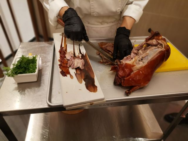 这边吃烤鸭也算是挺不错的啦,还有鲍鱼汤也是做的挺好的,加上一点东西下去的话,出来的效果会更加的好,服务上面的话的水平也算是过得去,专人去切鸭