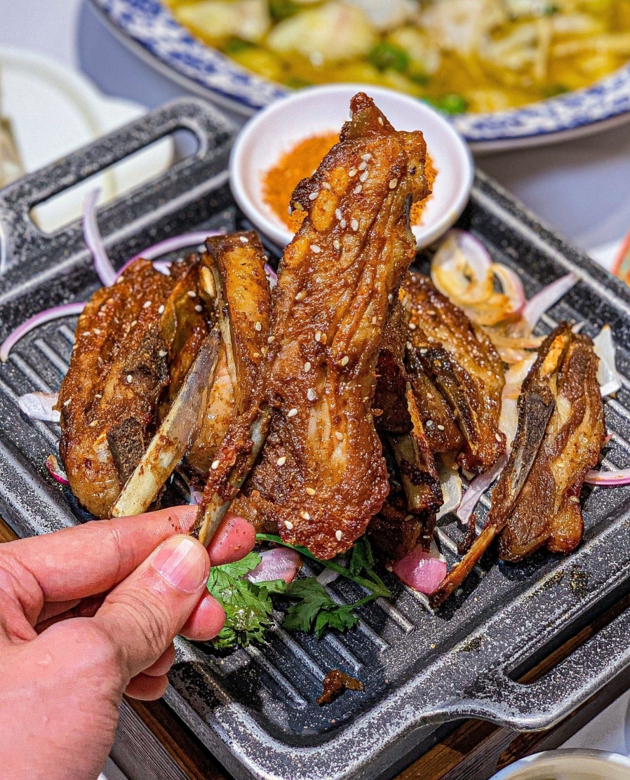 羊肉串,烤羊排,大汗手抓羊腿,乌兰花羊杂,手把羊排,大汗烤羊腿,羊肉饺子,羊蝎子,蒙古面筋,上汤豆苗
