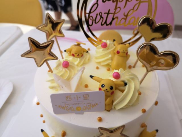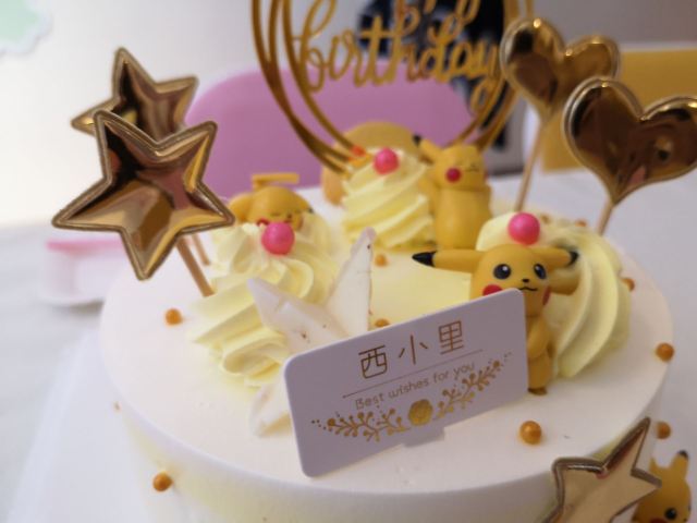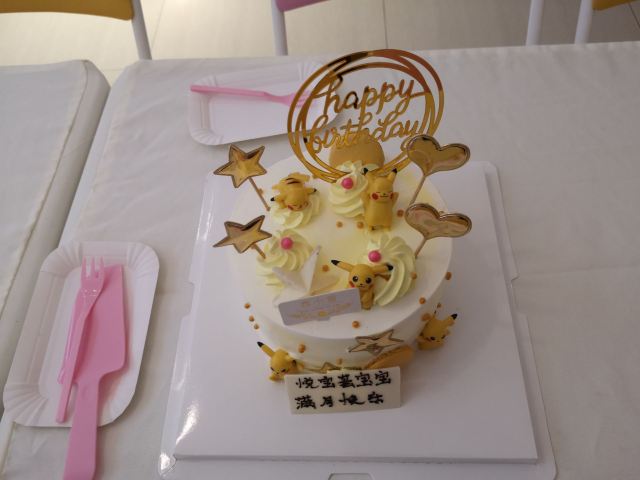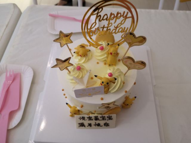 小宝今天满月订的蛋糕就是西小里的蛋糕,虽然不算是特别的大,但是每人都能够分到一小块,还算是不错,口味方面也算是可以,外面都是用芝士包,里面的就是比较朴实的蛋糕,不会特别的甜,比较适合现在很多人比较清淡的口味,上面是放了很多的比咔超,可以拿下来玩的,算是小朋友比较喜欢的蛋糕。