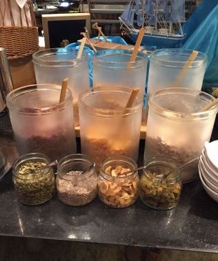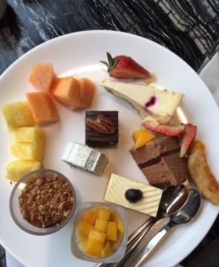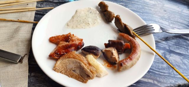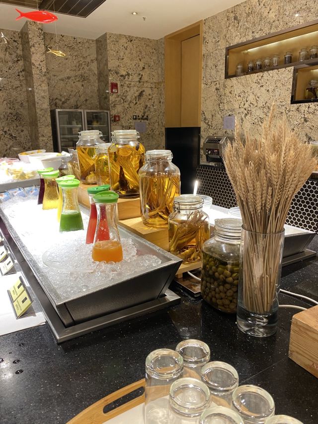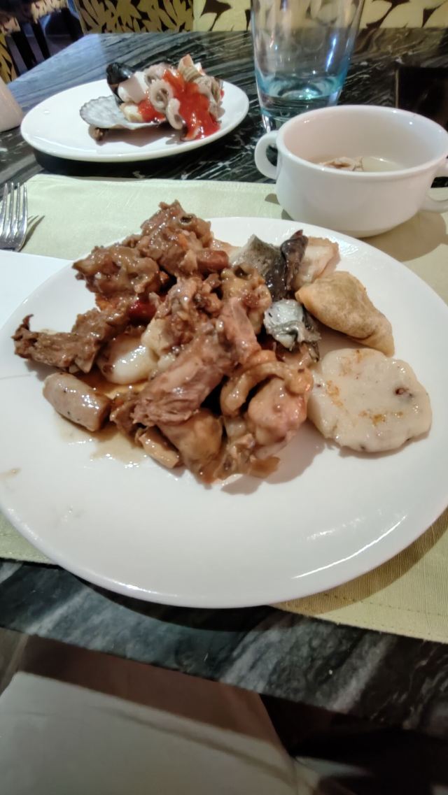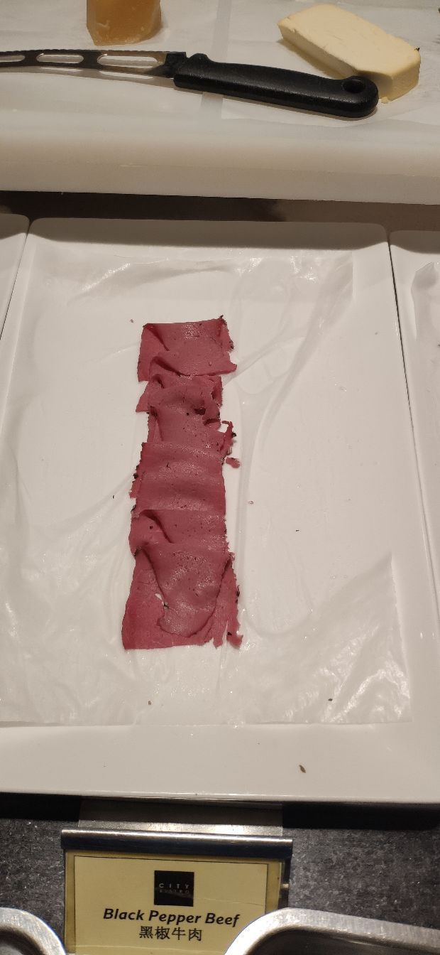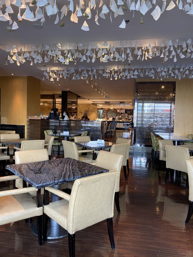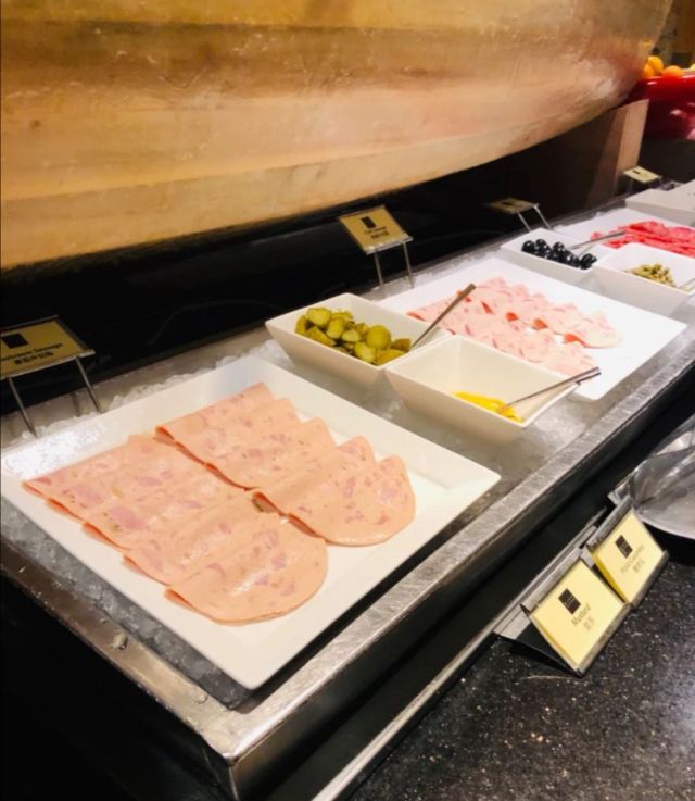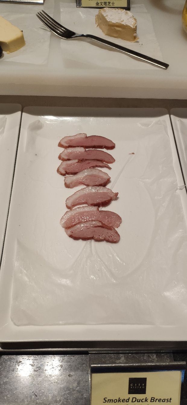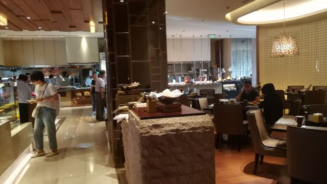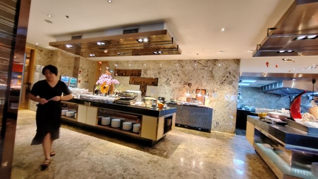 YoYo_6E3O3P5Q【菜品】菜式相对较少。 生蚝都几新鲜,而且补得很快。 翡翠螺推荐。 热菜有大众喜爱的鸡中翼、鸡柳等。试左烩牛肉,较霖。 烧烤档的海鲜串不错,牛肉串就好硬,羊架熟度刚好。 【甜品】种类唔算特别多,个人较喜爱朱古力慕斯。至于抱住芝士蛋糕一般唔会出事的心态的我,错了……芝士蛋糕好削,居然比慕斯还软,各位自己脑补效果...... 另外提一提杯装甜品,一般酒店都系用玻璃杯,呢度居然用胶杯,反复使用的胶杯观感有几“好”,酒店都知道吧。作为客人,虽然我都觉得玻璃杯罗得几杯都会觉得重;而作为酒店方亦都会觉得玻璃杯易碎成本高,但系“五星级”除左品质、味道、服务,各种details都好重要。