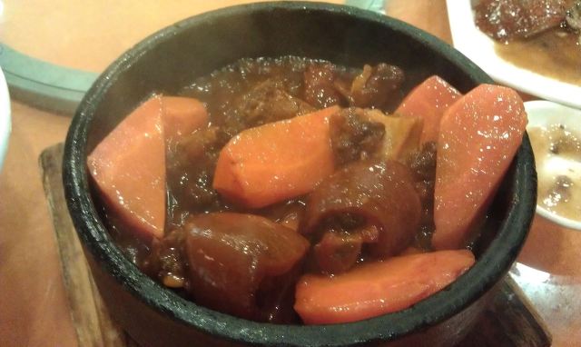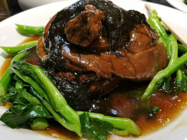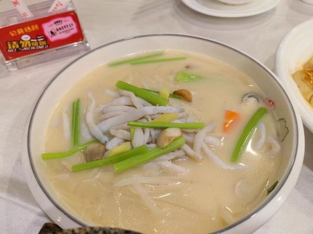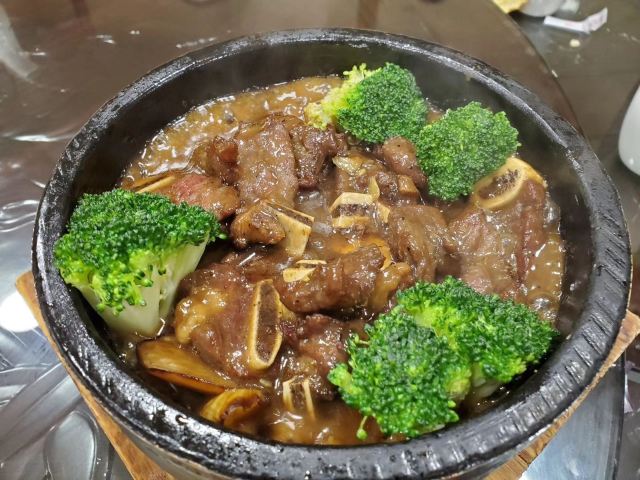 魔女锦鲤万年酒楼就在越秀南客运站附近,也是一间比较老的酒楼了。以前经常都会经过这里,但一直都没有时间进去品尝。 与朋友相聚,某人一直说这里的烧鹅好吃,于是终于有时间来一尝究竟。 来这里的交通也很便利,多部公交车可以直达,自从地铁六号线开启后,更有地铁可以到达。虽然门面虽然装修过,但没有怎么变化,门口旁还有砍烧腊的窗口,方便附近的街坊可以外带。内里的装修还是保留着老式茶楼的风格。基本上来这里帮衬的大部分都是老街坊了。 由于人比较多,怕要等位,因此提早了一天打电话来订位。 这里的菜色都是较为大众化口味的粤菜。点了几个招牌,烧鹅和石锅牛尾。另外的还有铁板鱼扣,上汤凉瓜青木耳,牛柳粉丝煲,云耳上素。 烧鹅,半只,皮脆肉香,肉质很入味,最爱还是烧鹅庇,可惜大大的烧鹅庇切开一块块,不过也方便可以大家一齐分享。烧鹅没有太多的肥膏,很好,我还是爱吃没有肥膏的烧鹅哇。 石锅牛尾,牛尾男性的补品,这个牛尾采用红萝卜炖,牛尾焖得好淋,但味道基本上是吸收晒红萝卜的味,不太适合不喜欢吃红萝卜的我吃。 铁板鱼扣,鱼扣本是不起眼的食物,但在辣椒洋葱姜片等配料的搭配以及铁板的加工下,成为大家喜爱的一款食物。其实我还是比较喜欢吃爽口的食物,因此也比较喜欢吃鱼扣。第一口咬下的时候感觉味道还可以,但同伴说很苦,终于在吃了几块后我也感觉倒有苦味了,估计是师傅杀鱼的时候把鱼胆弄破,导致鱼扣吸收了鱼胆的苦涩味。另外厨师也没有采取好的补救方法去祛除苦味。导致整个菜都失色了。于是立刻叫部长,要求部长换菜,但部长说不行,只能帮我们的餐单打个8.8折。 上汤凉瓜青木耳,清热解毒,因为我不吃凉瓜,汤我却会饮。苦后再甘甜,汤底不错。 牛柳粉丝煲,粉丝与牛柳两者,当然是牛柳好吃,牛柳还挺嫩的,但粉丝感觉就不够干身,味道还可以。 云耳上素,吃得吃多了,吃一个斋菜可以解解腻。