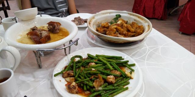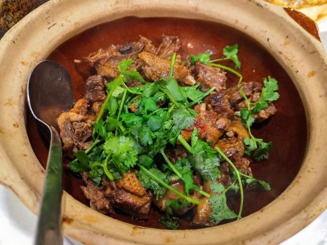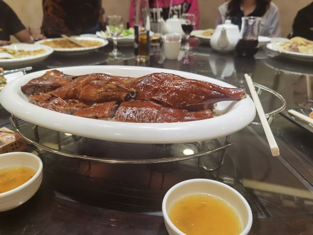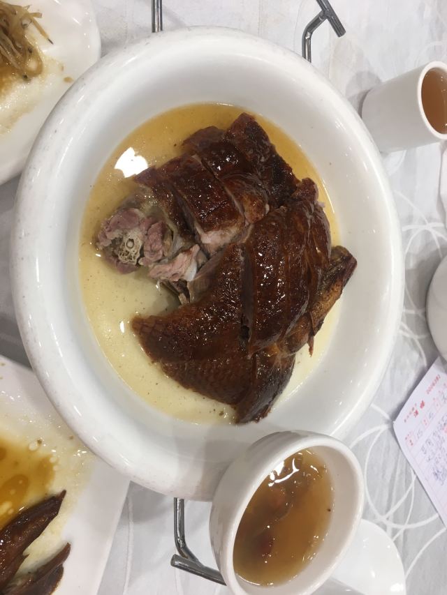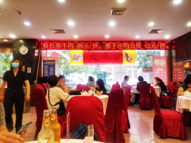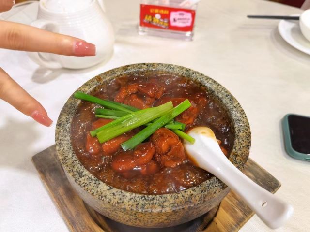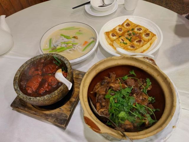 WanNian Restaurant打卡万年酒楼,干烧鸭,噘噘猪手,客家酿豆腐,沙虫炖萝卜,毛血旺[色][色][色][色]。 我们三人少兰,烧饼 和我聚会在广州[呲牙][呲牙][呲牙],今晚聚会,明天就得回家了[得意][得意][得意]
