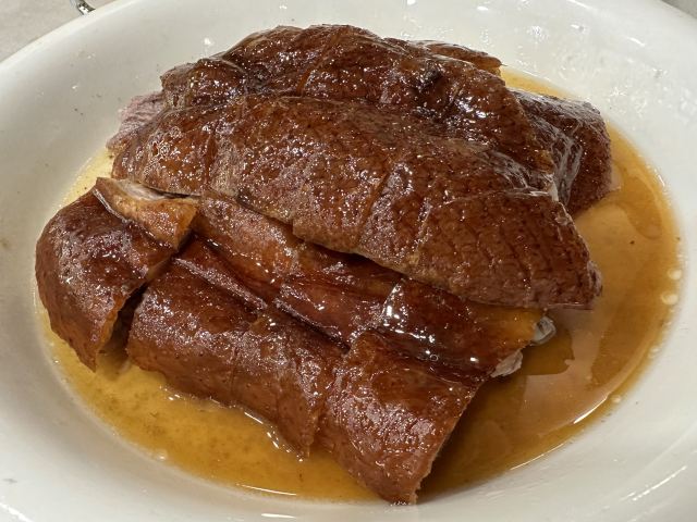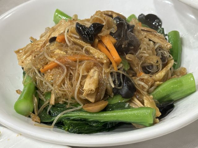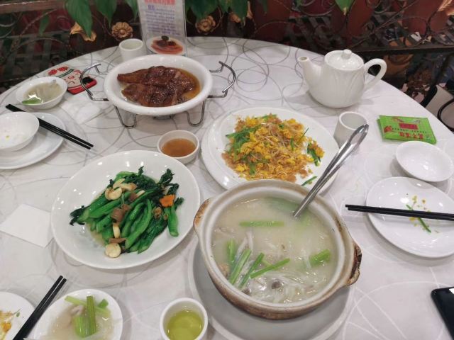 WanNian Restaurant晚上约了几个朋友在这里吃饭,知道这家餐厅很长时间了,每次经过都看到很多人在门口排队买烧腊,而我却一次都没有来这里吃过,终于等到这天。也许是下雨的原因吧,出乎意料不用等位。其实这里的出品挺好的,点了几道菜都是非常满意,每一道菜都是热乎乎的,吃着出来都是现做的。 {清蒸笋壳鱼},非常新鲜的鱼,蒸的火候也刚刚好,鱼肉非常鲜嫩鲜甜,而且这个鱼没有多少鱼,比较适合我这个懒人。 这里最出名的就是烧鹅,点份一份例牌,分量非常有诚意,皮脆肉多,虽然皮有点厚,但是皮下脂肪不多,而且皮非常脆,吃起来甘香。例牌的份量已经很多了,怪不得平时这么多人排队买烧腊。 其他的几个菜品都不错,碟头挺大的。