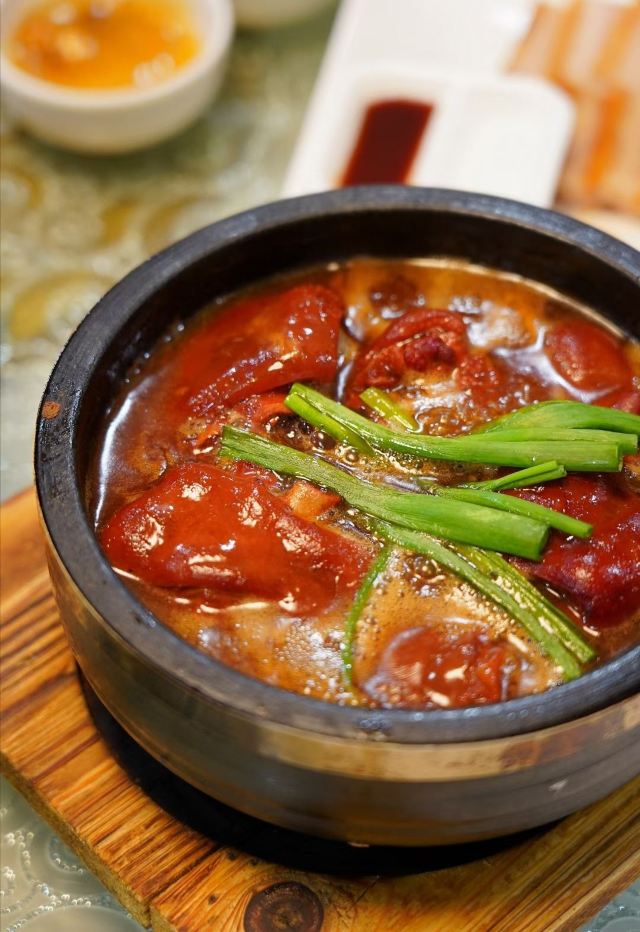 陌染MM晚上约了几个朋友在这里吃饭,知道这家餐厅很长时间了,每次经过都看到很多人在门口排队买烧腊,而我却一次都没有来这里吃过,终于等到这天。也许是下雨的原因吧,出乎意料不用等位。其实这里的出品挺好的,点了几道菜都是非常满意,每一道菜都是热乎乎的,吃着出来都是现做的。 {清蒸笋壳鱼},非常新鲜的鱼,蒸的火候也刚刚好,鱼肉非常鲜嫩鲜甜,而且这个鱼没有多少鱼,比较适合我这个懒人。 这里最出名的就是烧鹅,点份一份例牌,分量非常有诚意,皮脆肉多,虽然皮有点厚,但是皮下脂肪不多,而且皮非常脆,吃起来甘香。例牌的份量已经很多了,怪不得平时这么多人排队买烧腊。 其他的几个菜品都不错,碟头挺大的。