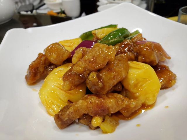 吾喺怪谭情系廿八载,承怀中原风 粤菜(广东菜)是中国传统四大菜系之一,也是中国八大菜系之一,源自中原。广州人偏爱粤式菜的主要原因是广州菜的清、鲜、嫩、滑、香,“五滋”“六味”让人食过返寻味。 在包容务实的广州,汇聚八方食客,越来越多的追求重口味的食客,粤菜酒楼食肆日渐式微。 然而,广州越秀南路这家万年酒楼,即使在2003年的“非典”期间仍食客盈门,廿八载到现在2020这个艰难时刻,仍食客入座率达到90%,不能不说酒楼的出品+服务让人心服口服! 顾客入门,店员礼貌周到为客人测体温,还配备酒精消毒;入座就端来热腾腾的可以减轻肺部炎症的柑茶。香滑的柑普茶助力怎么不会让人放心用餐? 传统的粤宴“先上汤,后上菜”。先来碗清润的粉葛膨鱼鳃炖猪展,连汤渣都有味呀。 1、万年真味鸡 一道做到极致的真味五谷鸡,薄脆的骨头,鸡肉嫩滑,皮薄晶莹,肥膏鲜见,嚼之有鸡味,咬之有弹性,搭配姜葱酱料更激发了鸡肉的鲜美。 2、至尊烧鹅皇 店员推荐时介绍说:选用个头适中的清远黑鬃鹅,再加以足够时日的棚养。 鹅的肉质变得细嫩且味道鲜美后,添精选荔柴加以高温烧制。 看着端上来的烧鹅,真系令人垂涎三尺呀!一口下去,脆滋滋的鹅皮,鹅肉带有浓郁荔香新鲜,使得整道烧鹅变得惹味又松化。趁热咬下一口,油香肉香从内滋出,越是咀嚼越发觉得香得诱人。 想要外带还得提前下单,手快有,手慢就被门外烧腊部排队的估清嘎啦! 3、风生水起捞双胘 牛胘厚实且口感爽脆,添加适宜咸度的调料和清香芫荽,入口后味道鲜美脆口,还进一步增添了味觉层次感。 4、生炒糯米饭 的确考功夫啦,粒粒弹牙有嚼劲,入口甘香。 5、传统马蹄糕、香煎银丝饼 马蹄糕通明可见马蹄,微甜,软、滑、爽、韧,尽显粤式点心特色。 银丝饼干脆酥丝,一点豆蓉才下咽喉甜在心头。 适逢看到万年酒楼推出了二款盆菜: 1、鸿运烧卤盆菜:298元/盆。 2、发财聚宝盆:328元/盆。 顺便买个盆菜回家,祝愿老少身体健康!