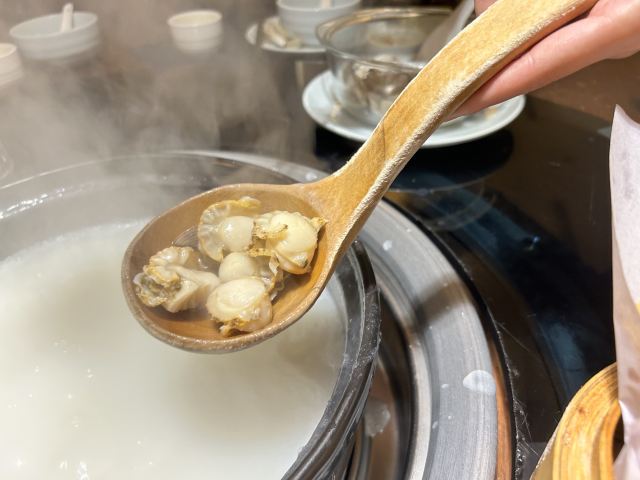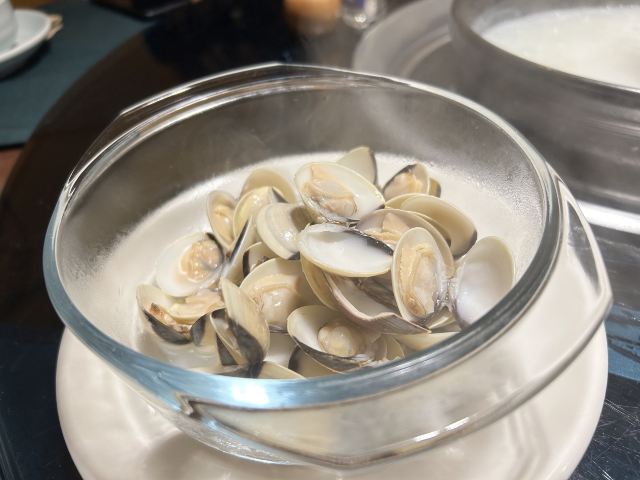陌染MM路过东站附近,无意中进来用餐,发现这家餐厅非常不错,它主打粥水火锅,比较不太上火,但是我们没有吃火锅,尝试了一下粤式茶点,也是他们最近才新推出的品种。下单以后等待的时间有点点稍长,因为点心都是即点即做的,我是宁愿等待稍微长一点时间,也不喜欢吃预制菜。 点心比起传统的有一点改良,例如:虾饺会加入黑松露,看上去有点“黑点点”,但是闻起来更香了。芝士和牛挞也是好吃,个头不大,如果热的时候一定要小心,咬下去热馅容易烫到舌头,待凉了以后可以一口吃,牛肉汁和沙拉酱的配搭绝了。 这里的服务也是非常棒,服务员挺多的,一直关注着每张桌子的情况,及时加水、收拾空盘子。餐厅的环境非常舒适,看上去就是一个比较高档的用餐环境。