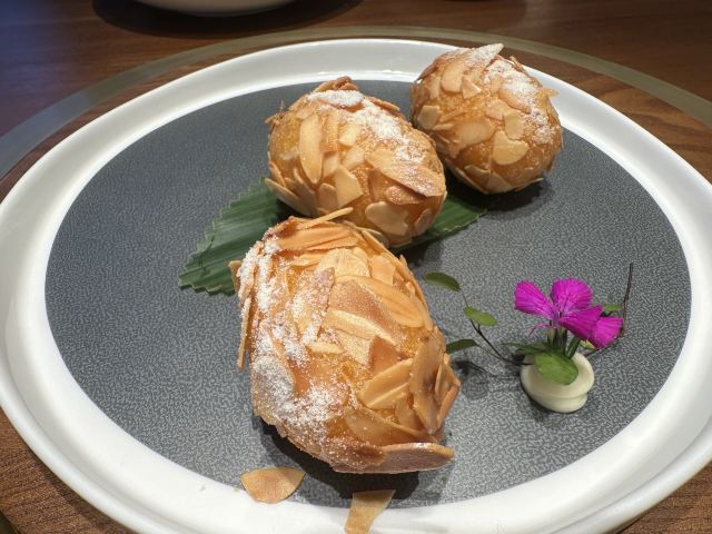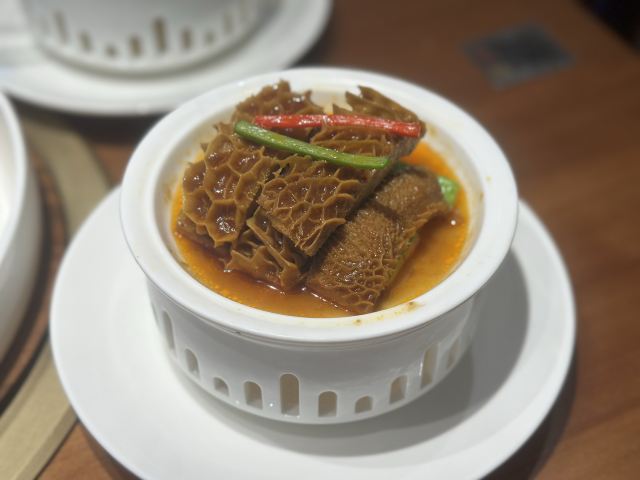 路过东站附近,无意中进来用餐,发现这家餐厅非常不错,它主打粥水火锅,比较不太上火,但是我们没有吃火锅,尝试了一下粤式茶点,也是他们最近才新推出的品种。下单以后等待的时间有点点稍长,因为点心都是即点即做的,我是宁愿等待稍微长一点时间,也不喜欢吃预制菜。 点心比起传统的有一点改良,例如:虾饺会加入黑松露,看上去有点“黑点点”,但是闻起来更香了。芝士和牛挞也是好吃,个头不大,如果热的时候一定要小心,咬下去热馅容易烫到舌头,待凉了以后可以一口吃,牛肉汁和沙拉酱的配搭绝了。 这里的服务也是非常棒,服务员挺多的,一直关注着每张桌子的情况,及时加水、收拾空盘子。餐厅的环境非常舒适,看上去就是一个比较高档的用餐环境。